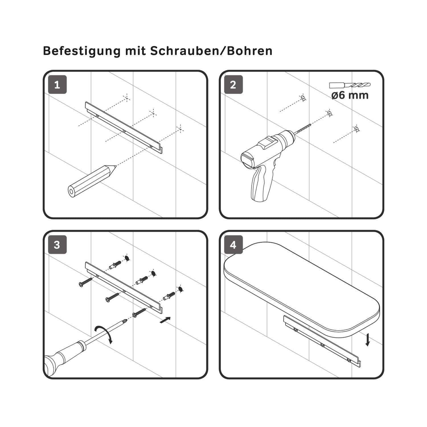 Das Set enthält verdeckte Befestigungen, die Installation des Produkts erfordert keine professionellen Fähigkeiten.
