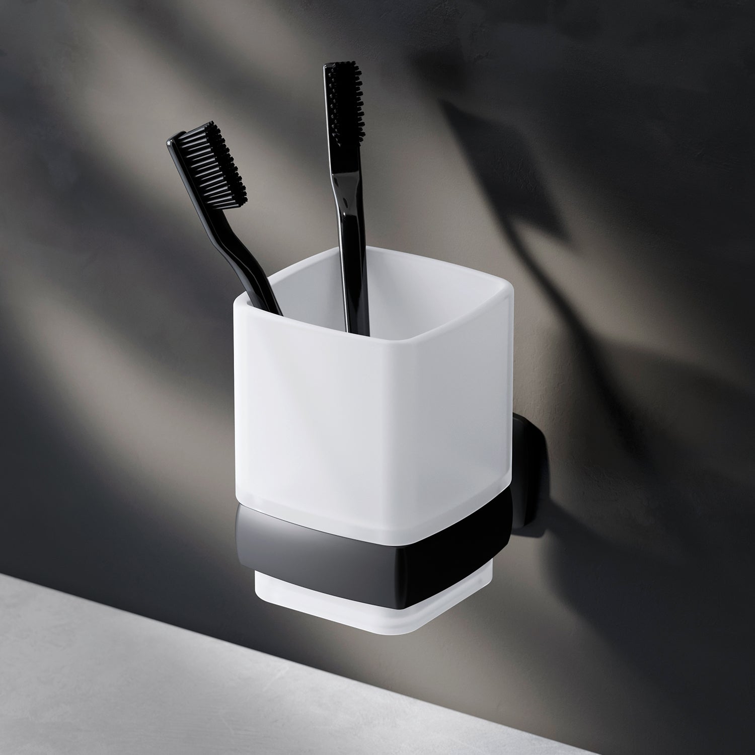 AGA34322 Zahnbürstenhalter Gem Zahnputzbecher mit Wandhalterung, Schwarz