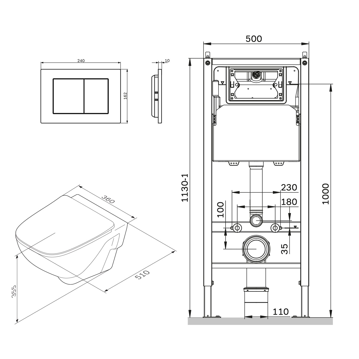 IIS90251.XA1700 Set: Wand-WC + Vorwandelement + Drückerplatte