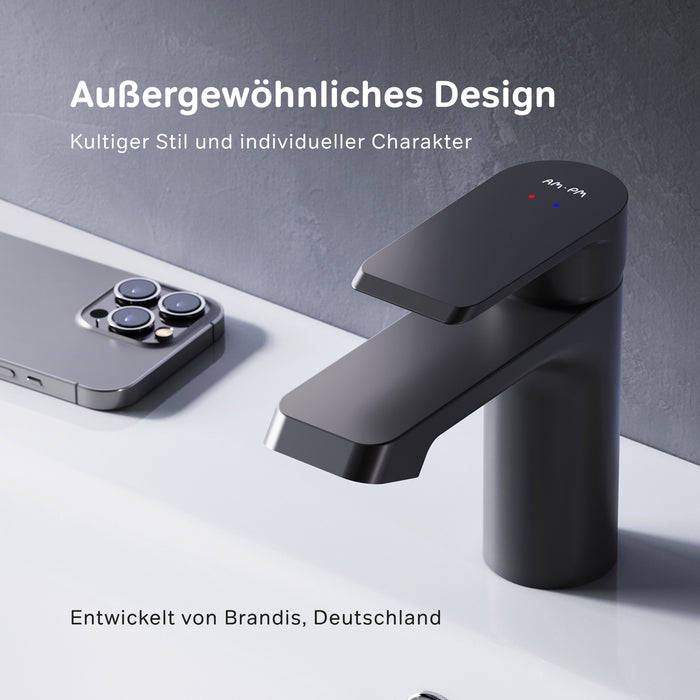 FNA02122 Bad Armatur Flash Waschtischarmatur Wasserhahn, Schwarz