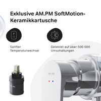 Exklusive Entwicklung: Speziell für AM.PM entwickelte SoftMotion-Keramikkartusche (Durchmesser 35 mm) sorgt für eine optimale Temperaturregelung und ermöglicht es der Armatur, auch bei Druckabfällen zu funktionieren.