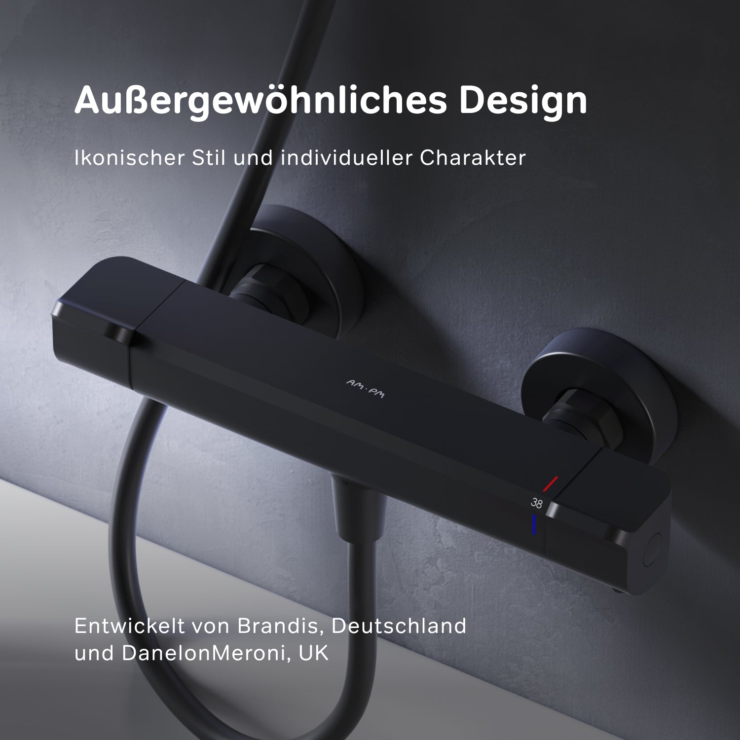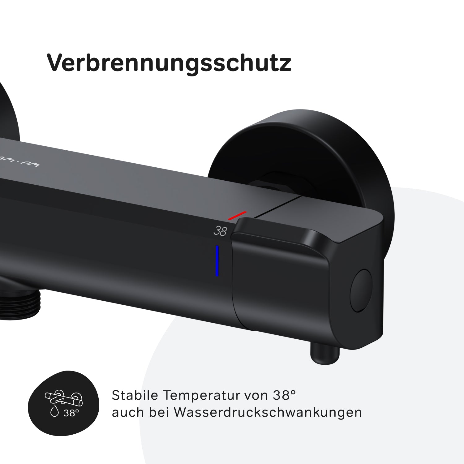 FNA40022 Duscharmatur Thermostat Flash Brausearmatur Mischbatterie Dusche, Schwarz