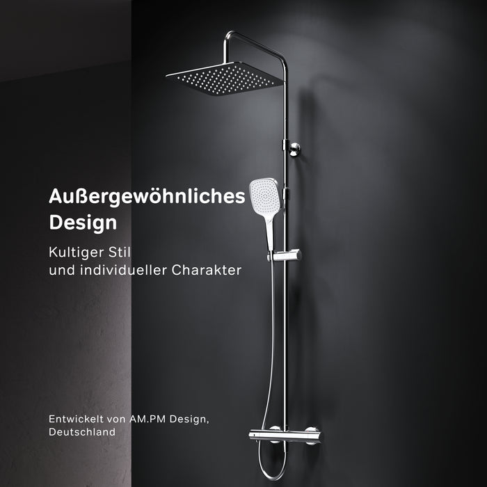 Entdecken Sie das exklusive Duschsystem oder Duschset von AM.PM, das Eleganz und Komfort vereint. Erleben Sie pure Entspannung unter der Regendusche in Chrom und Schwarz – ein wahrer Blickfang für Ihr Badezimmer. Unsere Regendusche-Sets bieten die Wahl zwischen Thermostat oder ohne, für kalt&warm Wasser, dank hochwertigem Messing, hergestellt von einem renommierten deutschen Hersteller.
