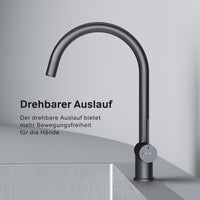 Die EcoStart-Funktion – eine stilvolle und umweltfreundliche Lösung für Ihr Zuhause: Beim Öffnen in der Mittelstellung fließt automatisch kaltes Wasser. Für warmes Wasser drehen Sie den Hebel nach links; eine Drehung nach rechts ist blockiert. Durch die Optimierung des Bewegungsbereichs lässt sich der unnötige Wasserverbrauch um bis zu 40 % pro Monat reduzieren. Ein weiterer Vorteil: Die Armatur kann direkt an der Wand installiert werden – ideal für kleine Küchenräume.