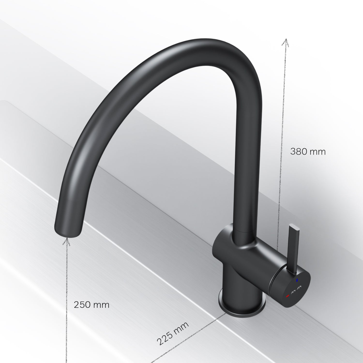 F8F07022 Küchenarmatur Func Spültischarmatur Küche Spültisch-Einhebelmischer, Schwarz