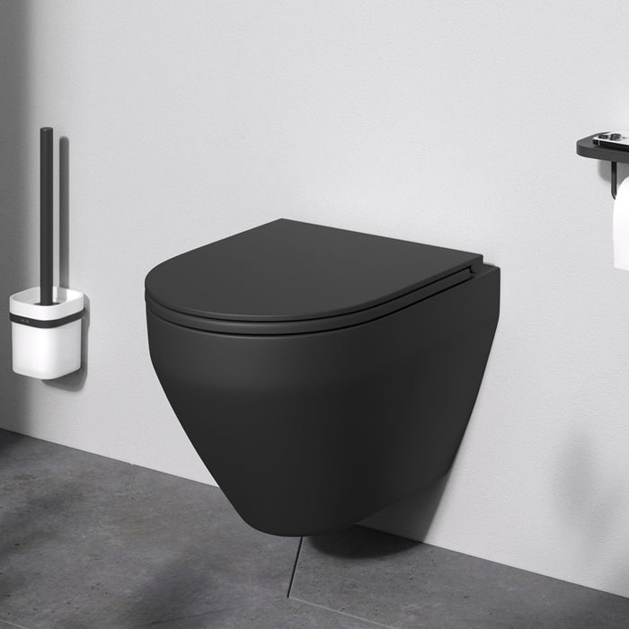 CSB1700MBSC Wand-WC mit Sitz Spirit FlashClean Tiefspül-WC Spülrandlos Hänge WC mit Toilettendeckel, Schwarz