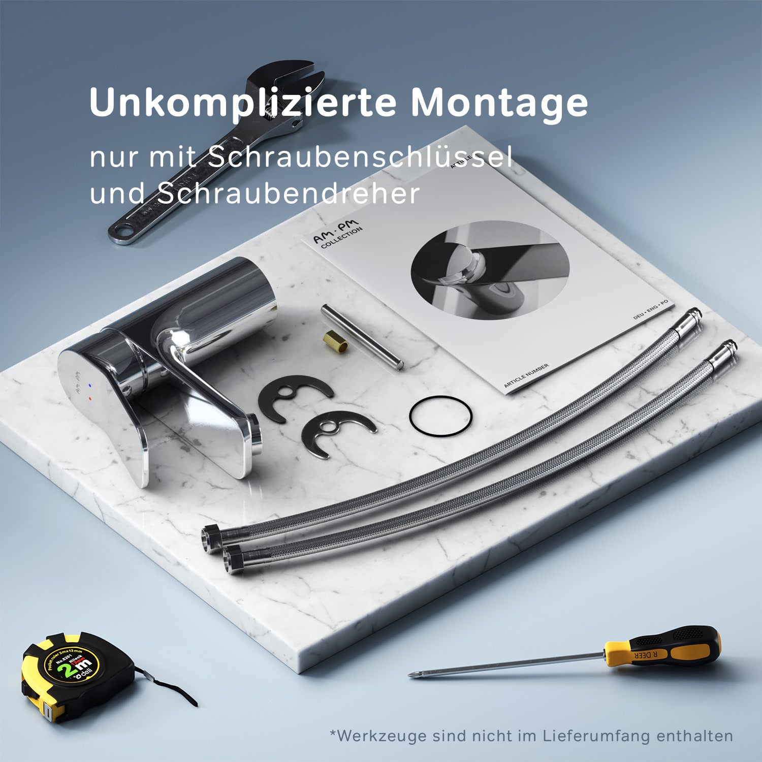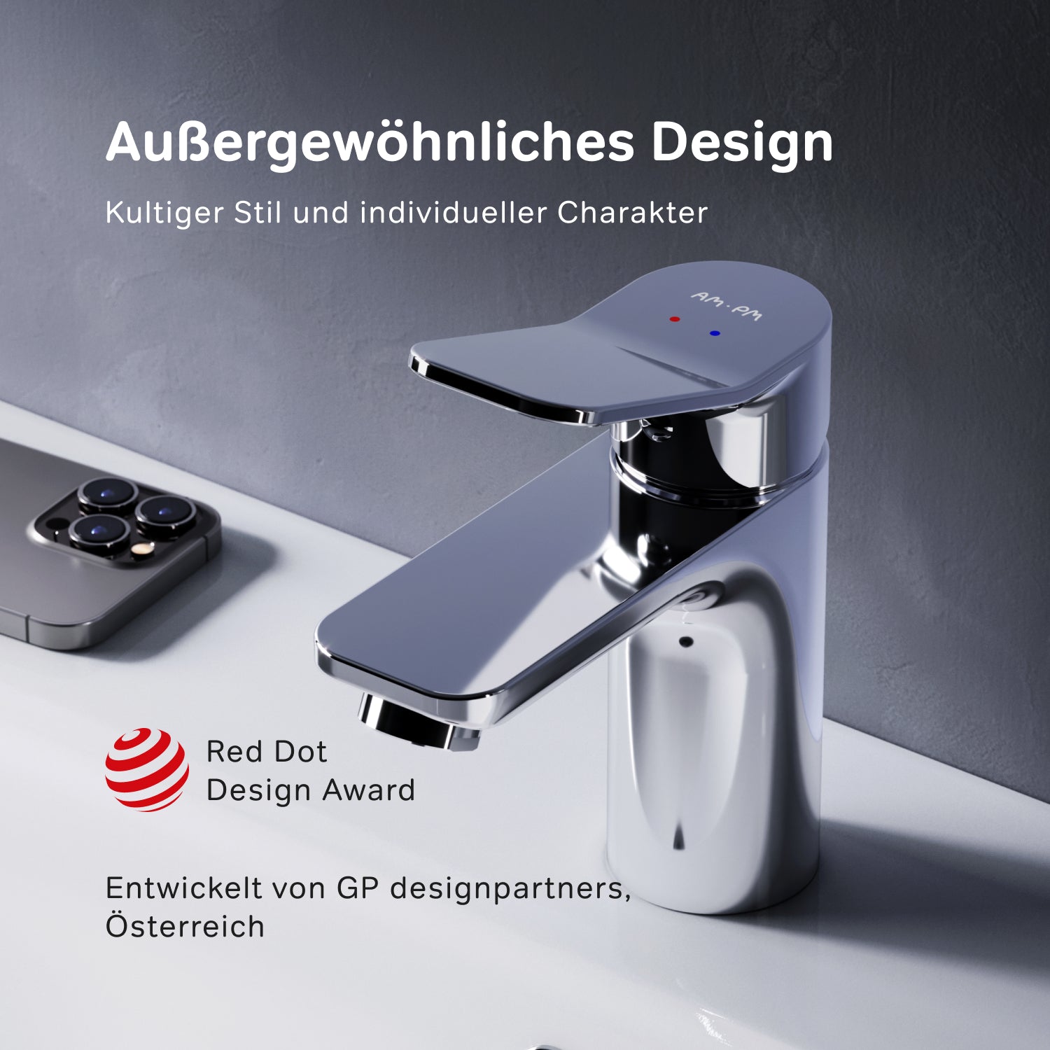 Nach dem SA-Standard (SA = Smart Angle) haben wir eine ideale Geometrie entwickelt - ein mathematisch angepasstes Höhenverhältnis der Armatur, Auslauflänge und Neigung des Armaturkörpers für eine bequeme Nutzung auf Waschbecken von 50 bis 120 cm. Die X-Joy Armatur ist mit einer 35 mm SoftMotion Keramikkartusche ausgestattet, die speziell für AM.PM entwickelt wurde. Diese Kartusche hilft bei der Temperaturregelung und hält auch Druckschwankungen stand. Die X-Joy-Armatur ist aus massivem Messing gefertigt. Außerdem ist die Oberfläche mit einer robusten Everlast-Beschichtung versehen. Dies ist der Industriestandard für Robustheit und Langlebigkeit.