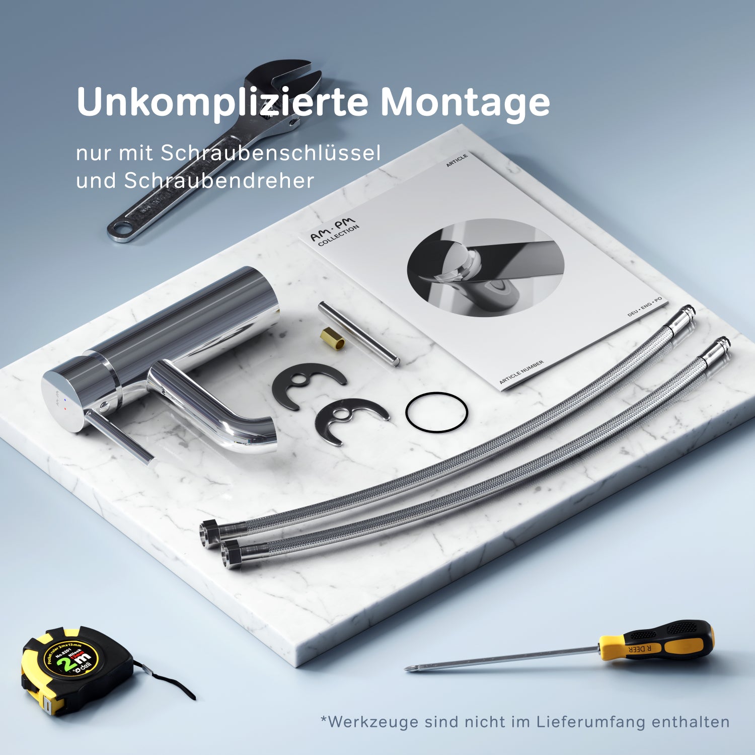 Die AM.PM Spike Waschtischarmatur ist nicht nur visuell ansprechend, sondern auch funktional und zuverlässig. Ideal für jene, die Wert auf Qualität und modernes Design legen. Verleihen Sie Ihrem Badezimmer mit dieser Armatur einen Hauch von Eleganz und Funktionalität, während Sie Ihren Waschbereich stilvoll gestalten und die Nutzung Ihrer Waschgelegenheit verbessern.