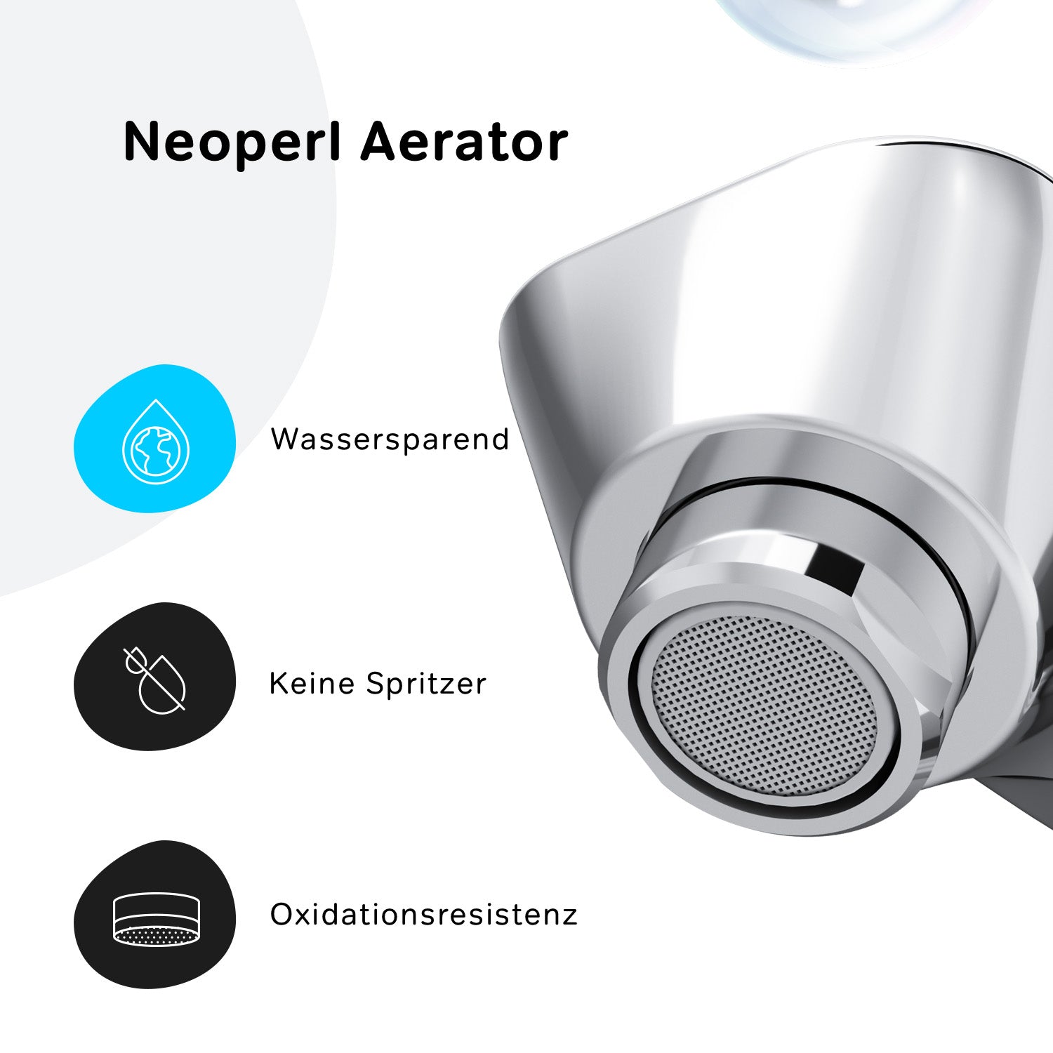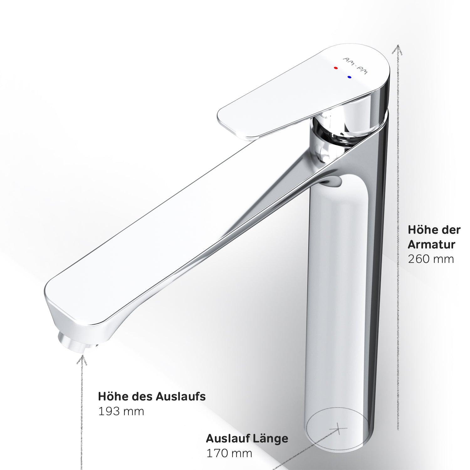 Akkurate Technik für Ihren Komfort: Die Wassertemperatur lässt sich durch die Bewegung des Hebels mühelos steuern. Exklusiv für AM.PM entwickelte SoftMotion-Keramikkartusche mit 30 mm Durchmesser. Das durch den Perlator fließende Wasser wird mit Luft gemischt, um Spritzer zu vermeiden. Außerdem hält Rub&Clean den Perlator kalkfrei.