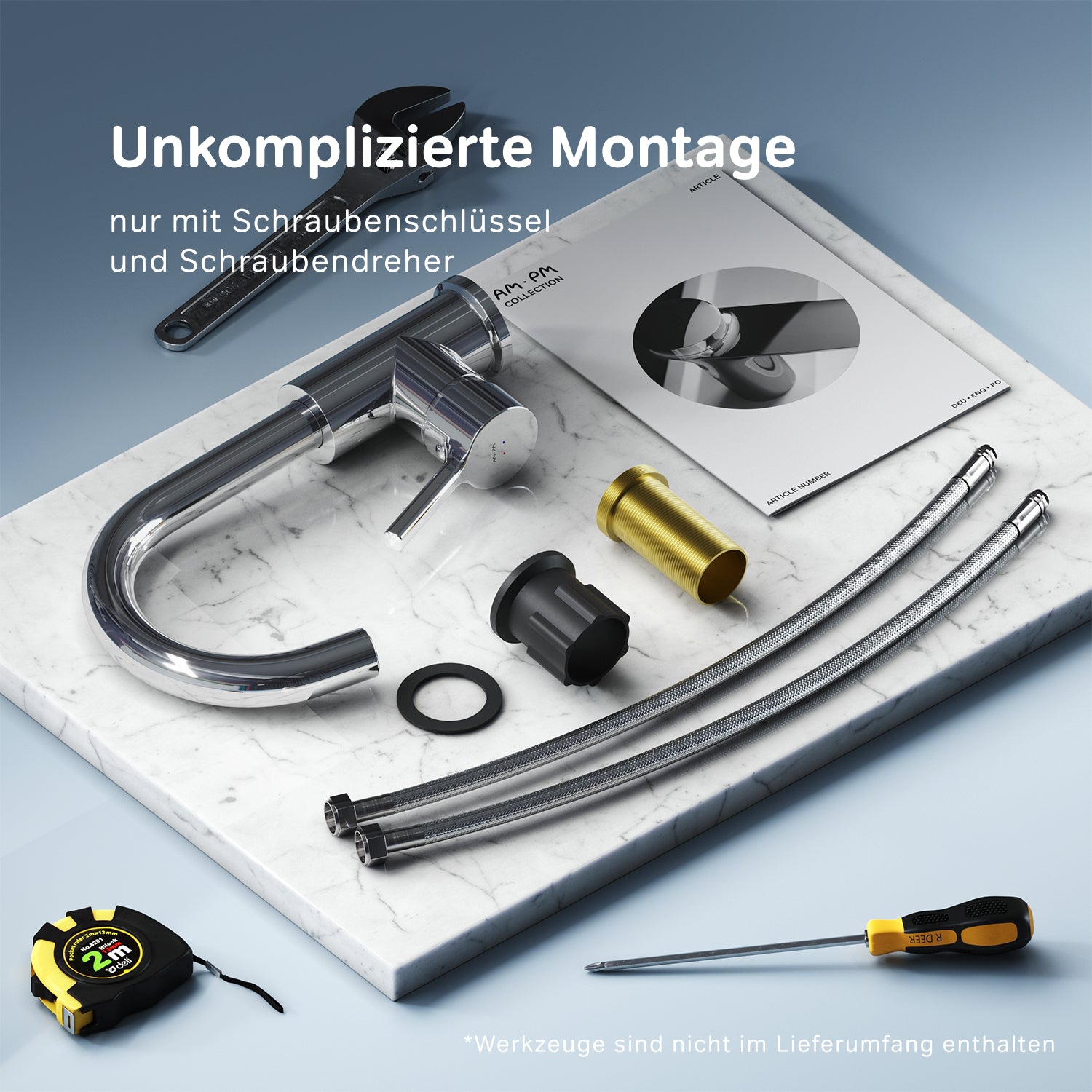 Bei Bedarf können Sie die Waschbeckenarmatur für das Badezimmer auch in der Gäste-Toilette oder sogar in der Küche installieren.