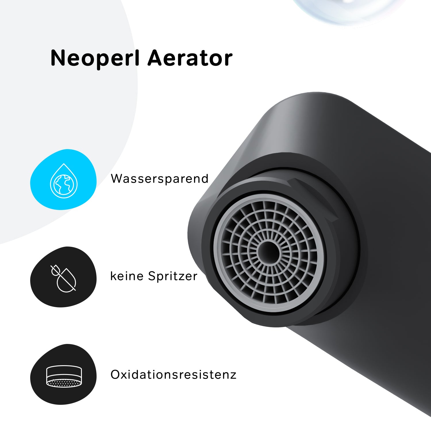 L'aérateur Neoperl utilise une technologie d'économie d'eau sans éclaboussures d'eau en mélangeant le jet d'eau avec l'air.