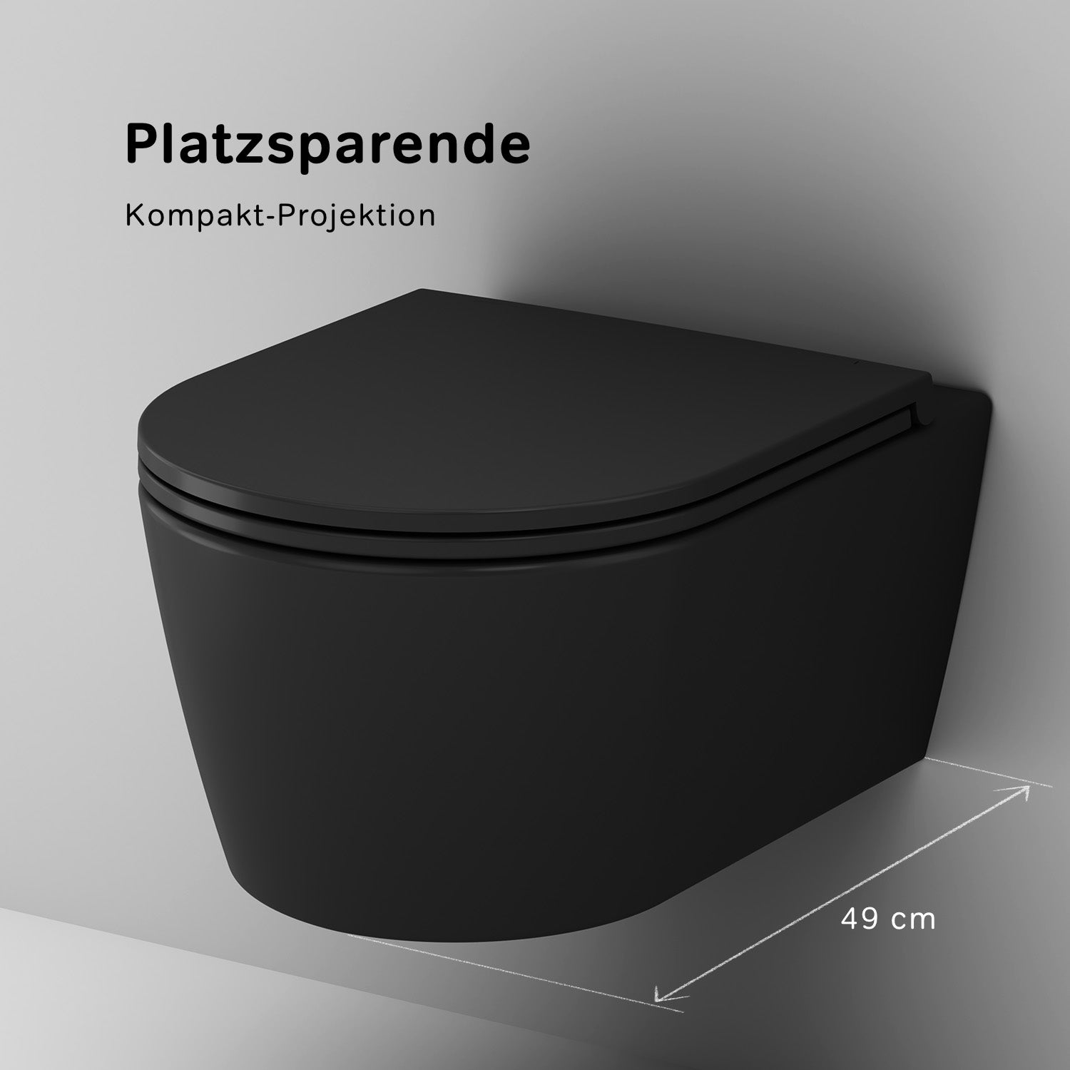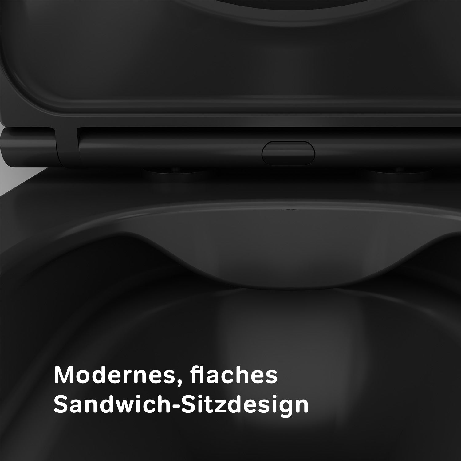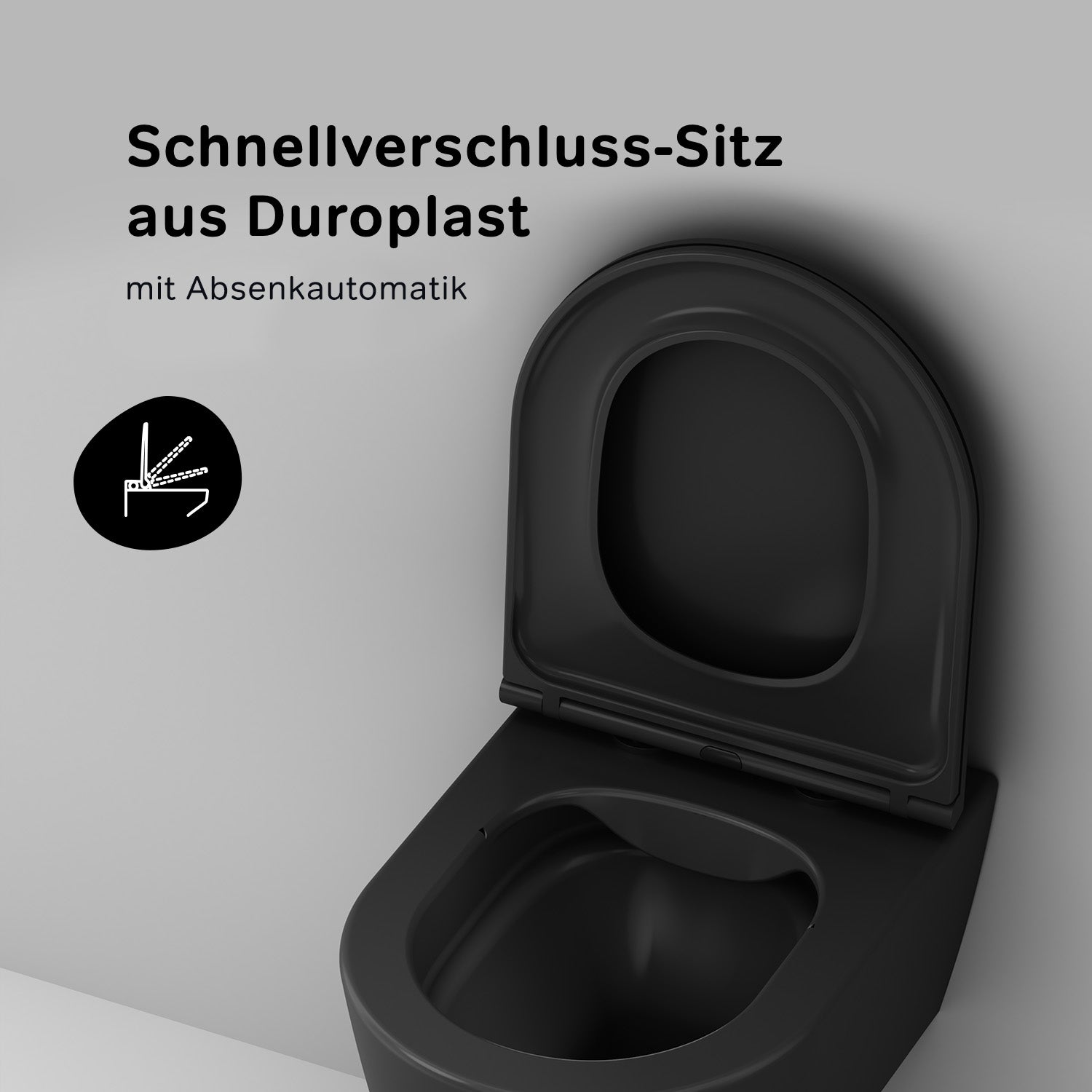 CFA1700MBSC WC suspendu avec siège Func FlashClean WC à fond creux, WC suspendu sans rebord avec abattant, noir