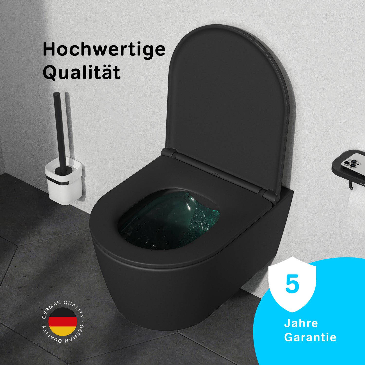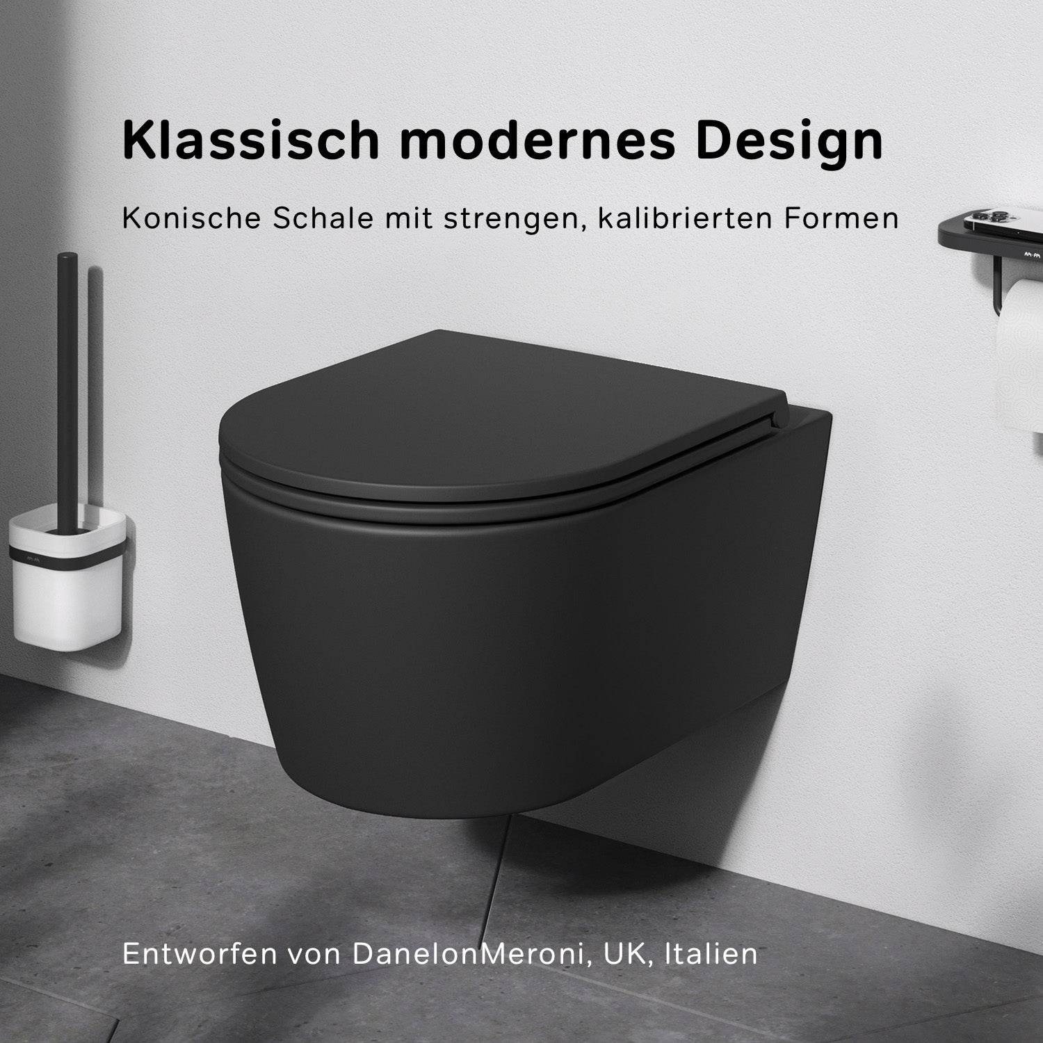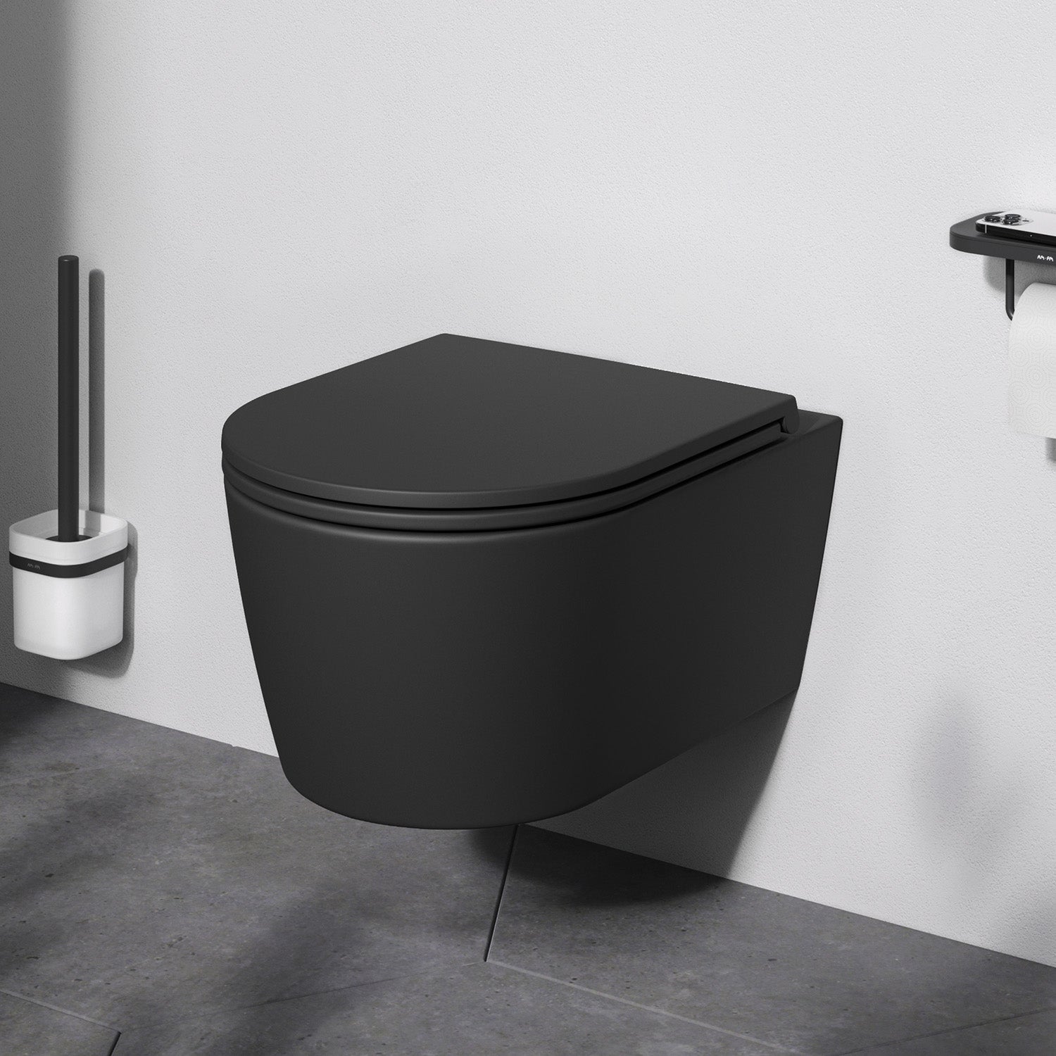 CFA1700MBSC WC suspendu avec siège Func FlashClean WC à fond creux, WC suspendu sans rebord avec abattant, noir
