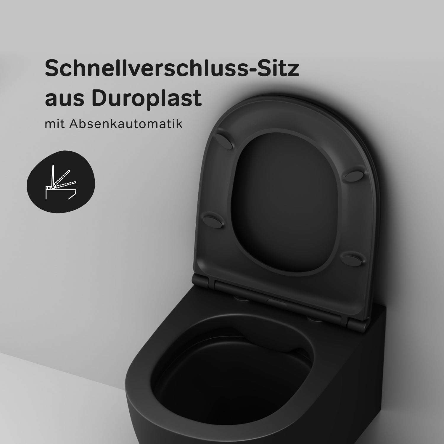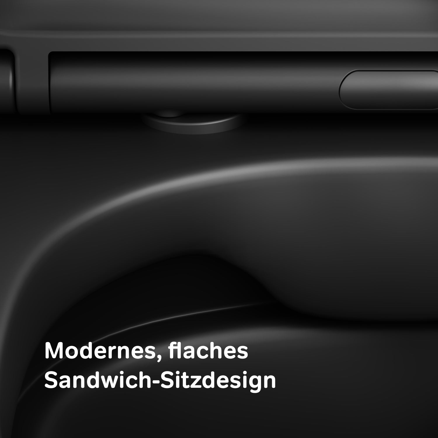 Toilettes murales CXB1700MBSC avec siège X-Joy S Toilettes à fond creux FlashClean, WC suspendu sans bride avec abattant, noir