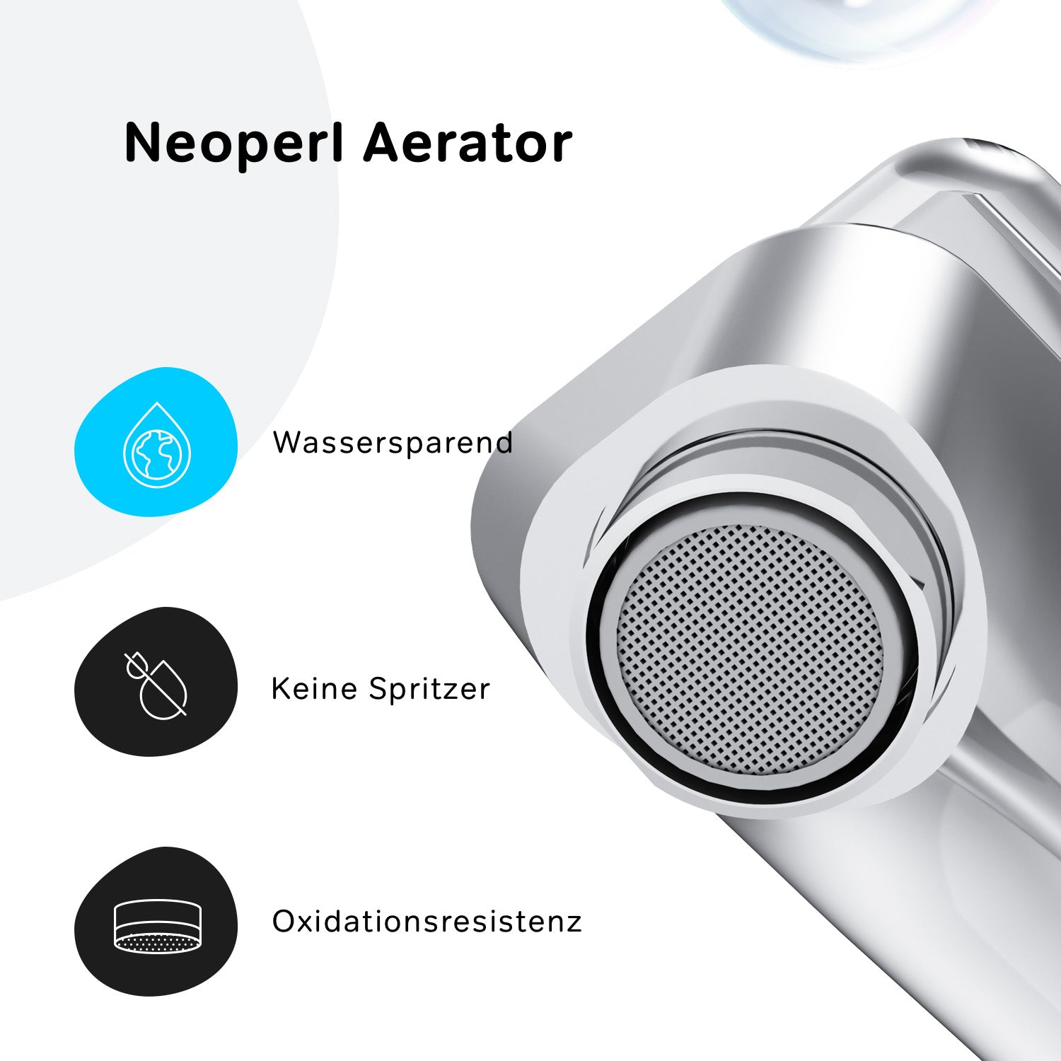 Une technologie précise pour votre confort : La température de l'eau peut être facilement contrôlée en déplaçant le levier. Cartouche céramique SoftMotion d'un diamètre de 35 mm, développée exclusivement pour AM. PM. L'eau qui circule dans l'aérateur est mélangée à de l'air pour éviter les éclaboussures. Rub&Clean maintient également l'aérateur exempt de calcaire.