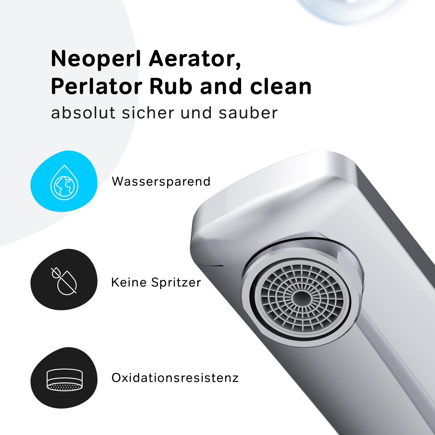 L'aérateur utilise une technologie d'économie d'eau sans éclaboussures d'eau en mélangeant le jet d'eau avec l'air.