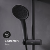 La pomme de douche assure un débit d'eau uniforme et ajoute une touche de sophistication avec son design moderne. La douchette complète l'ensemble et offre flexibilité et confort lors de la douche. La colonne de douche intègre parfaitement ces éléments et donne à votre salle de bain une touche contemporaine. La surface noire mate confère à l'ensemble une touche élégante et s'intègre à une grande variété de styles d'intérieur.