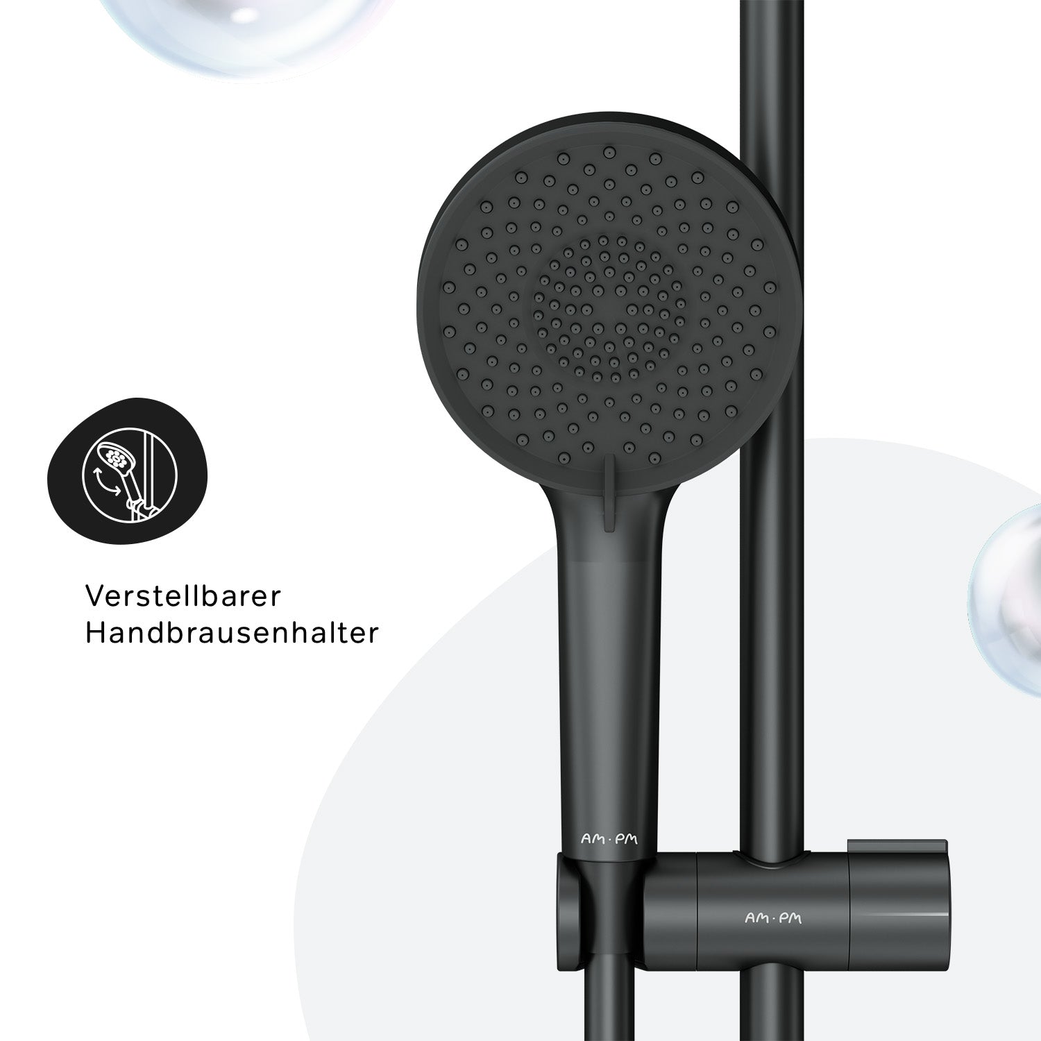 Fabriqué à partir de matériaux de haute qualité, l'ensemble de douche AM.PM X-Joy garantit longévité et résilience. Cet ensemble est idéal pour ceux qui recherchent la qualité, le design et la fonctionnalité dans leur salle de bain. Avec l'ensemble de douche AM.PM X-Joy en noir mat, vous vivrez une symbiose parfaite entre esthétique et confort dans votre rituel de douche quotidien.