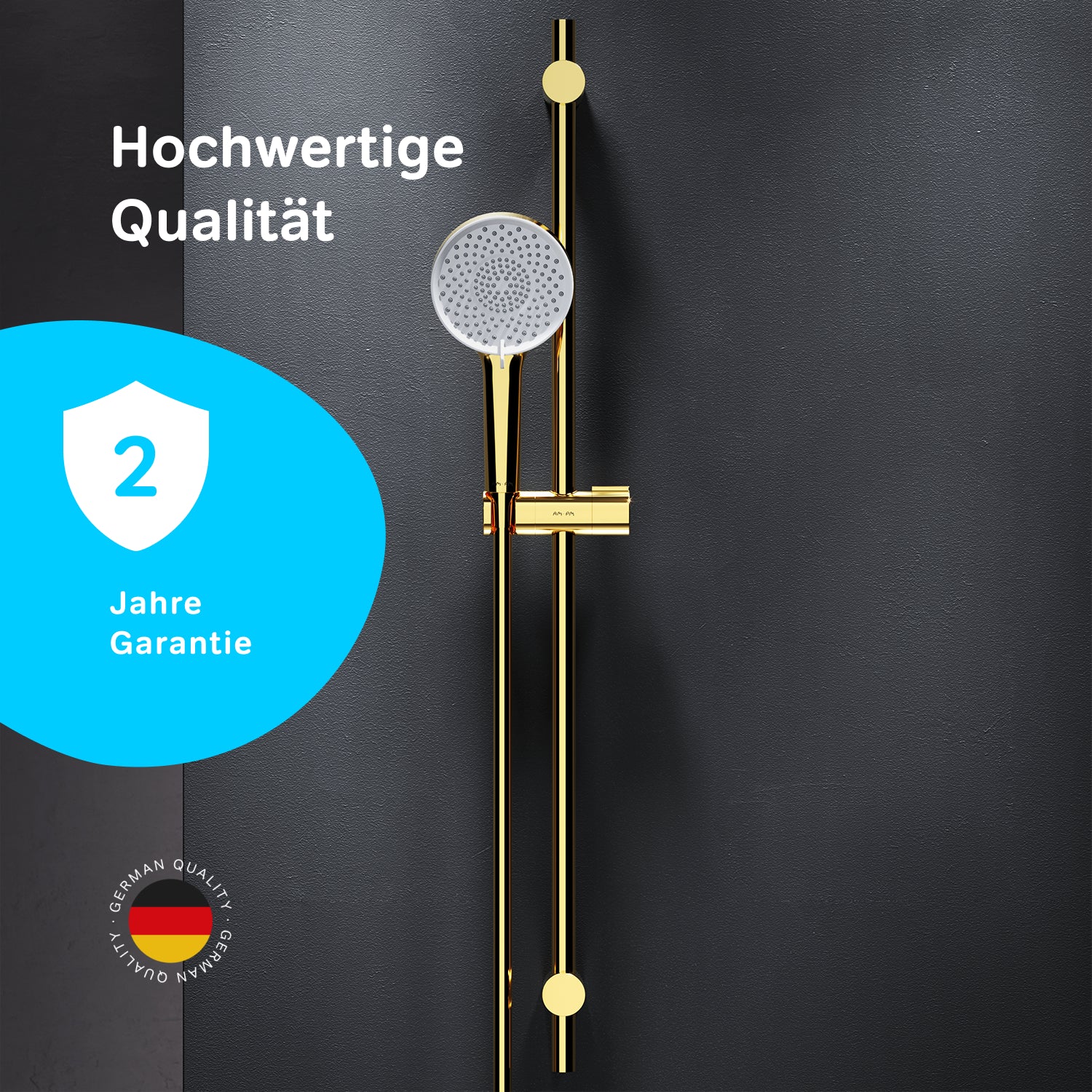 Fabriqué à partir de matériaux de haute qualité, l'ensemble de douche AM. PM X-Joy garantit durabilité et résistance. Cet ensemble est idéal pour ceux qui recherchent qualité, design et fonctionnalité dans leur salle de bain. Avec l'ensemble de douche AM. PM X-Joy doré, vous découvrirez une symbiose parfaite entre esthétique et confort dans votre rituel de douche quotidien.