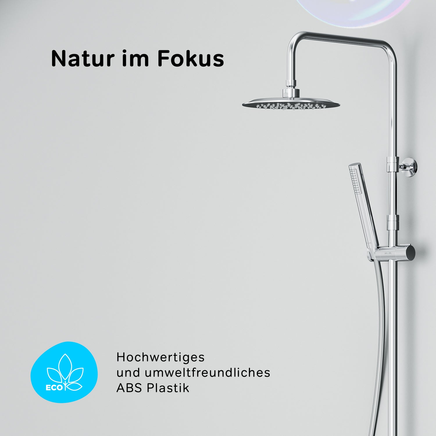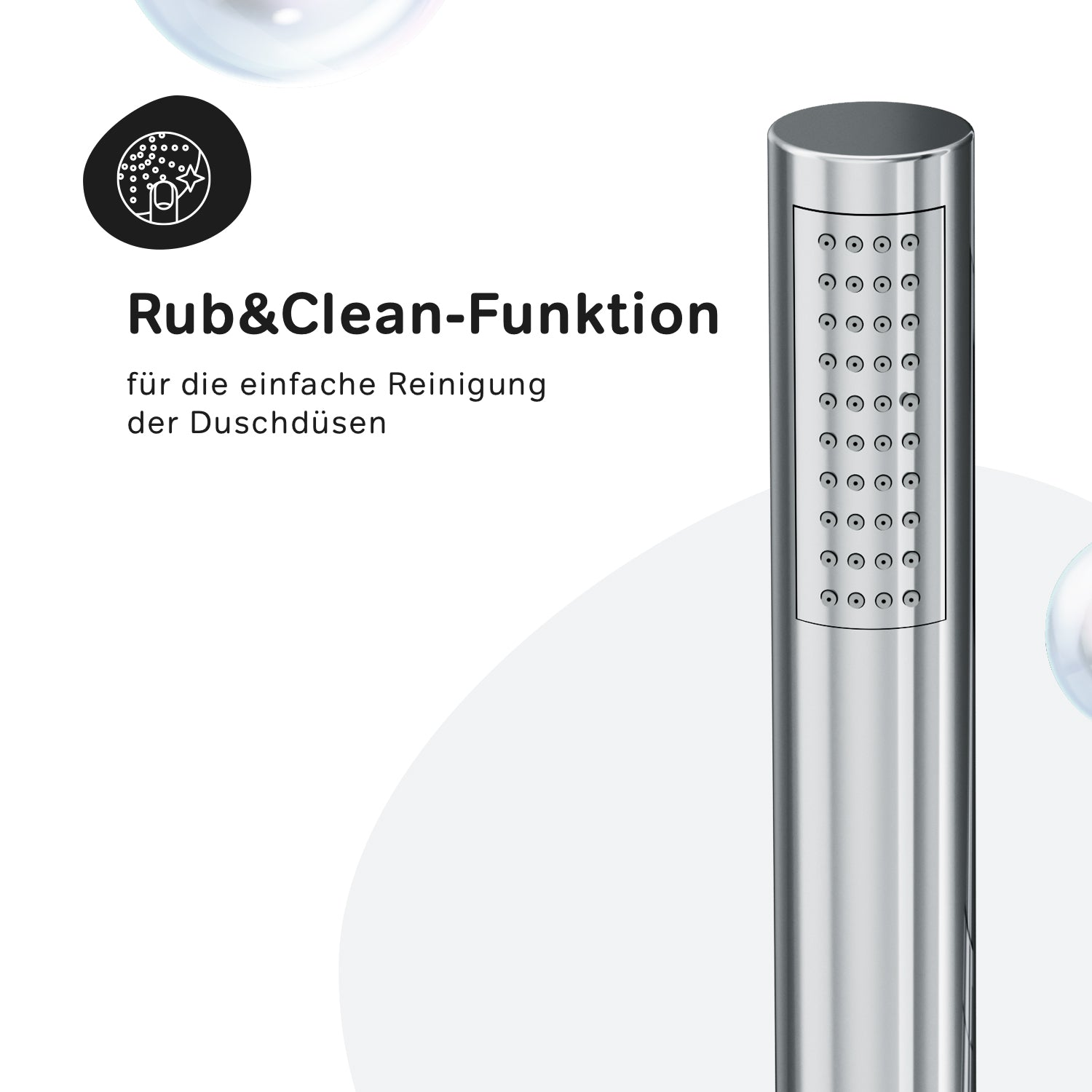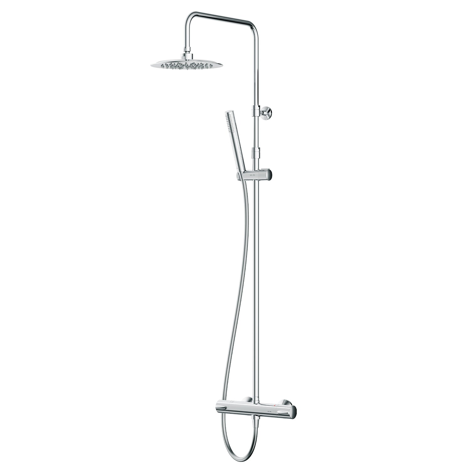 Des détails astucieux pour une utilisation facile : la barre de douche est réglable en hauteur de 1 030 à 1 460 mm, offrant un confort optimal à toutes les tailles. La rotule du support de pommeau permet de régler l'angle d'inclinaison, le flexible de douche mesure 1 750 mm de long et la douchette à main présente une forme de bâton tendance.