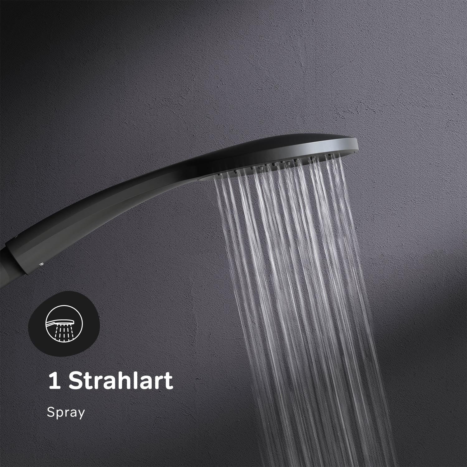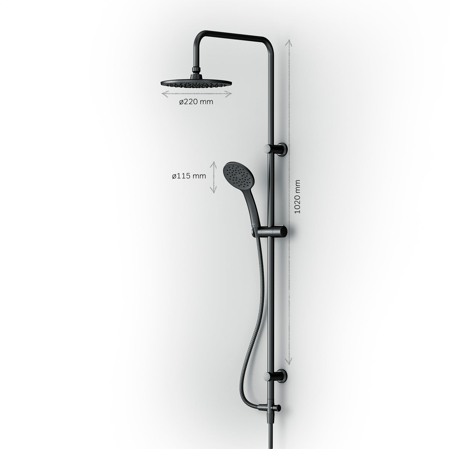 Tailles premium dans le segment de masse : le diamètre de douche plus grand (douche de tête 220 mm, douchette à main 115 mm) offre les avantages d'une douche à effet pluie même dans une salle de bain standard, tandis que le tuyau plus long de 1750 mm vous offre une grande liberté de mouvement pendant la douche