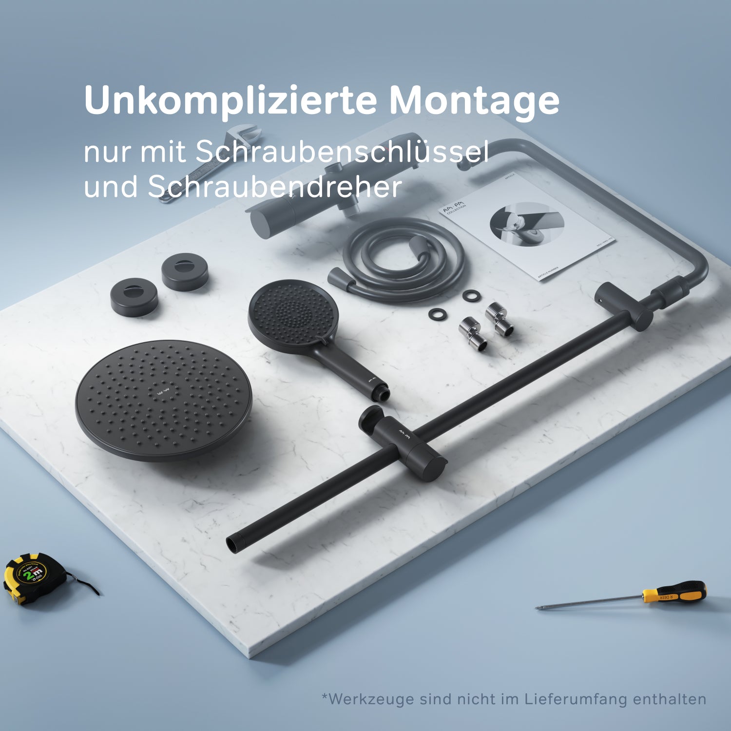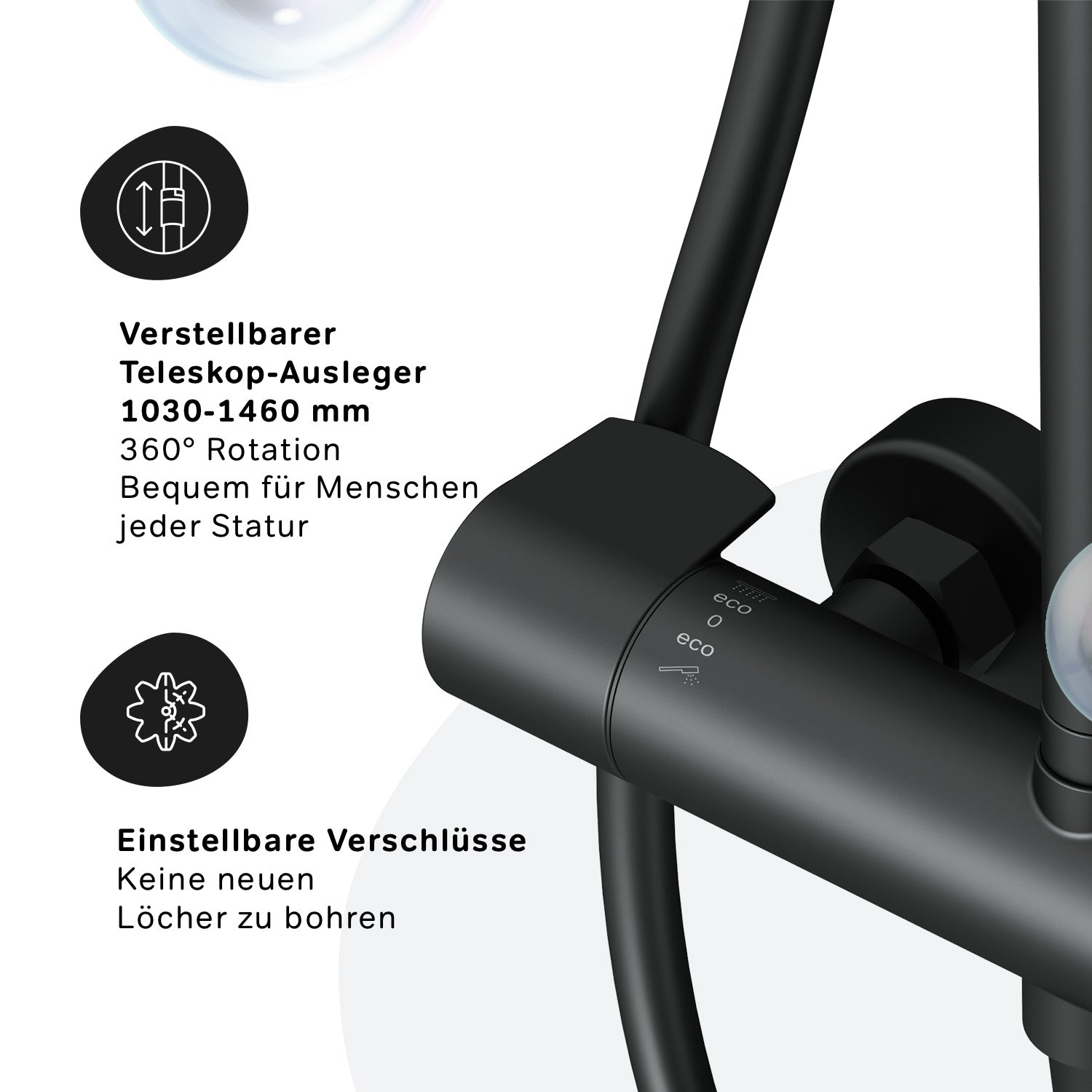 F07XA422 Système de douche avec thermostatique, robinetterie de douche X-Joy, colonne de douche à effet pluie, noir