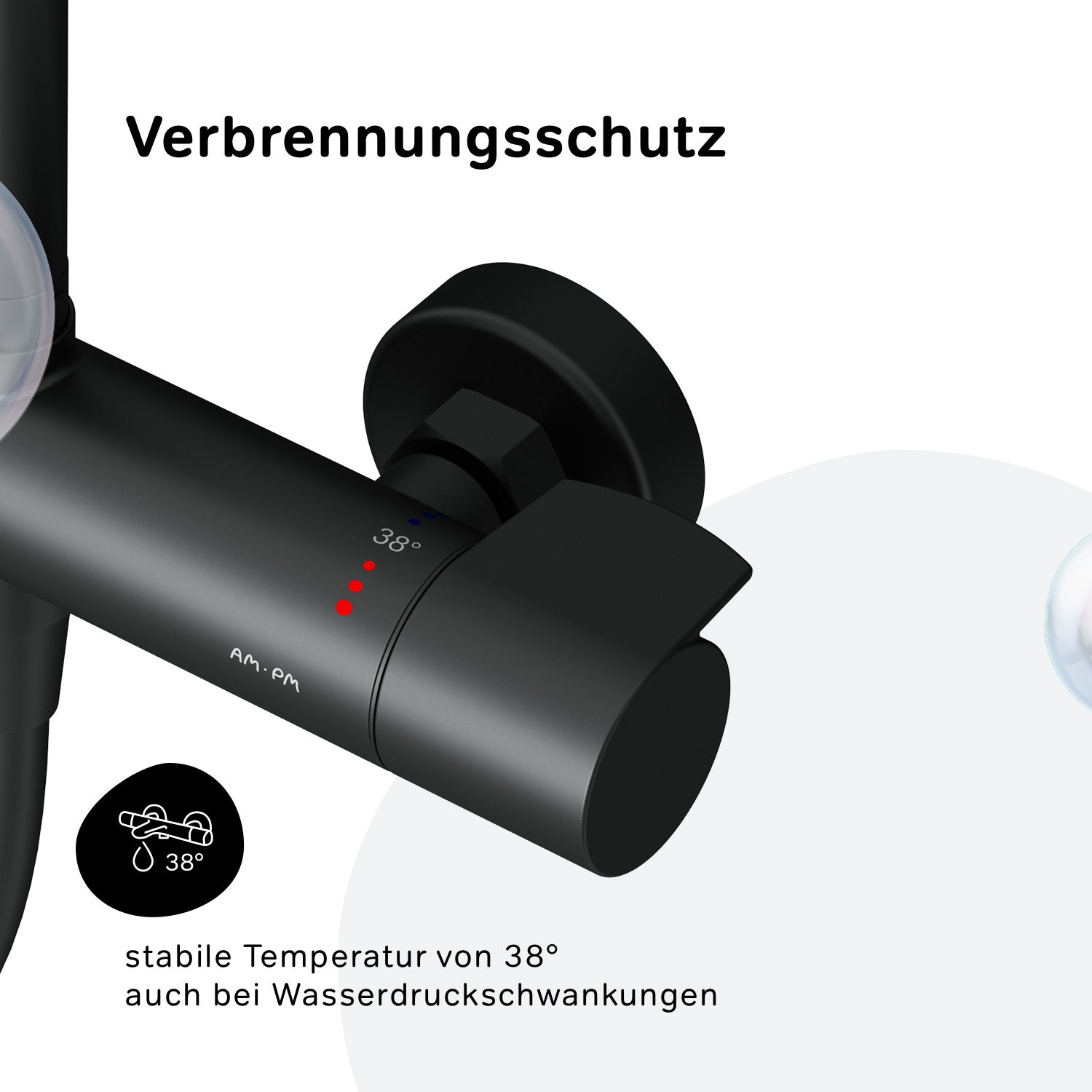Le système de douche AM.PM X-Joy en noir mat redéfinit l'élégance et la fonctionnalité dans la salle de bain. Ce système de douche avec thermostat de douche innovant offre non seulement un point culminant esthétique en noir mat, mais aussi un contrôle précis de la température pour une expérience de douche confortable.