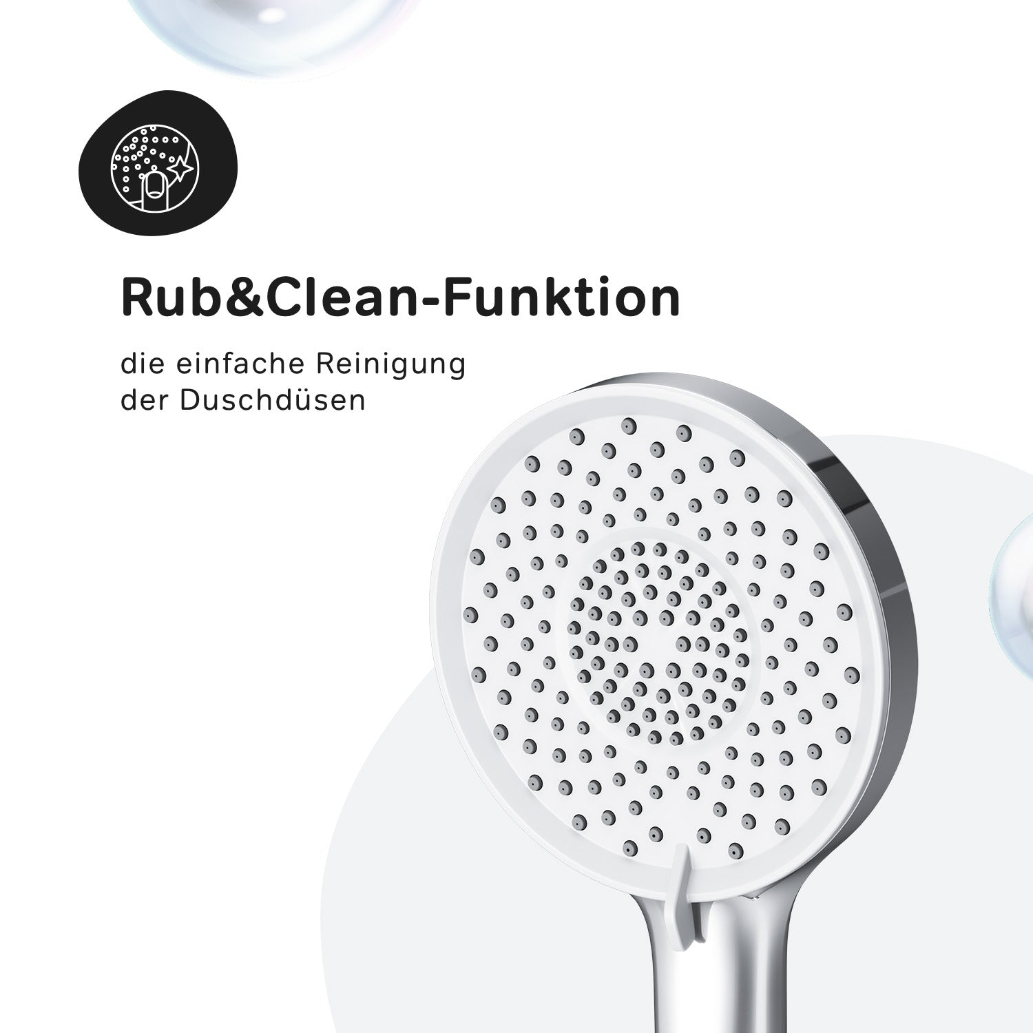L'ensemble de douche avec thermostat de douche en chrome brillant est un chef-d'œuvre pour la salle de bain moderne. Cet ensemble complet combine un ensemble de douche avec une douchette à main, une barre de douche réglable et un thermostat précis. La forme ronde confère à l'ensemble un aspect élégant qui met en valeur la pièce. Le thermostat assure une température constante de l'eau et protège contre les fluctuations soudaines, tandis que la douchette à main et la barre réglable offrent flexibilité et confort. La surface chromée confère à la salle de bain une finition intemporelle et brillante.
