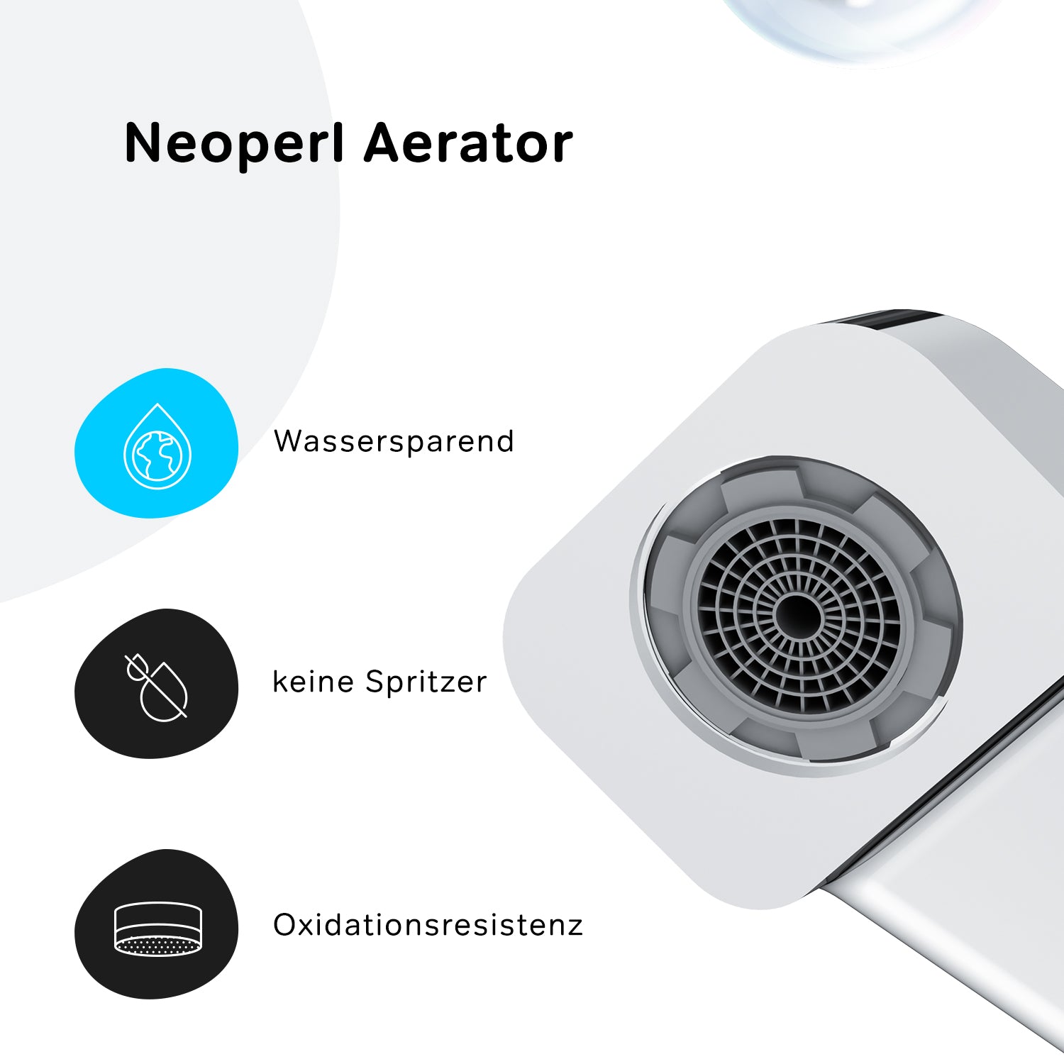 L'aérateur avec fonction Rub & Clean est facile à nettoyer du calcaire et sature le débit d'eau avec de l'air pour économiser l'eau.