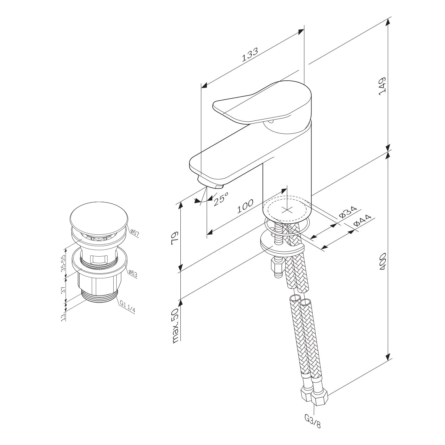 FXA82122 Robinetterie de salle de bain X-Joy Mitigeur lavabo avec garniture de vidage clic, noir