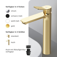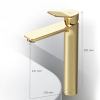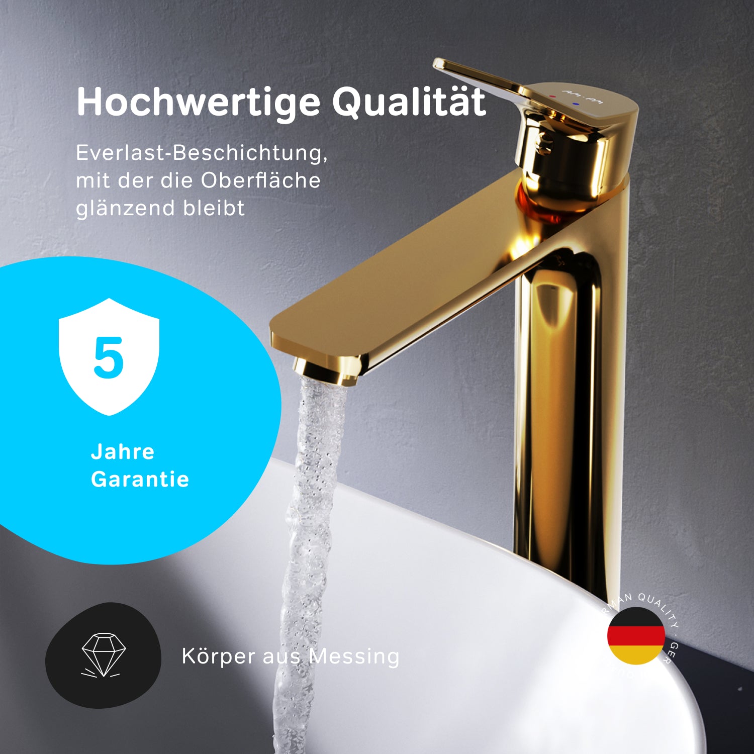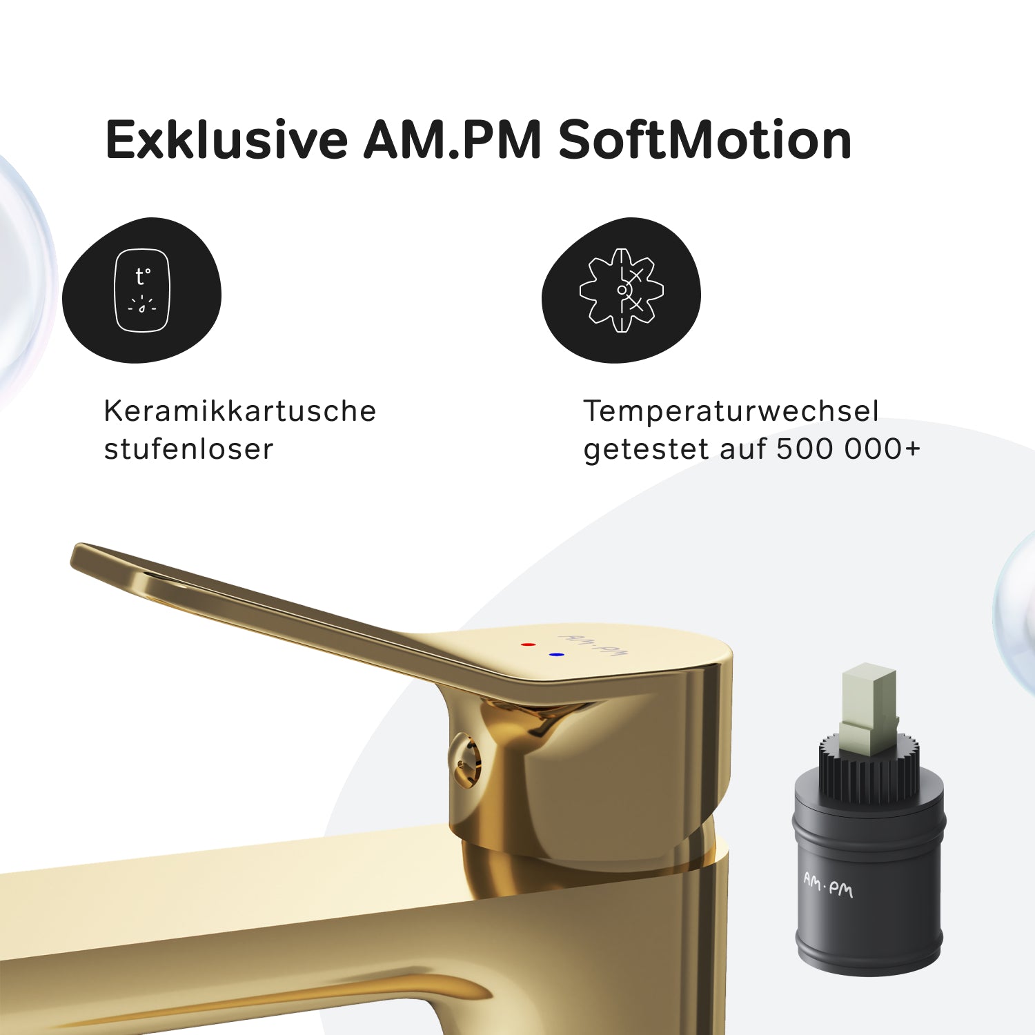AM.PM X-Joy FXA92099 Mitigeur de lavabo avec mitigeur monocommande (haut) , cartouche céramique SoftMotion, aérateur Neoperl, résistant aux rayures, facile à nettoyer, durable, or mat, hauteur de bec 231 mm