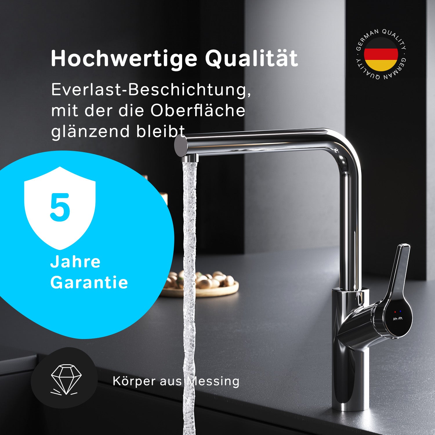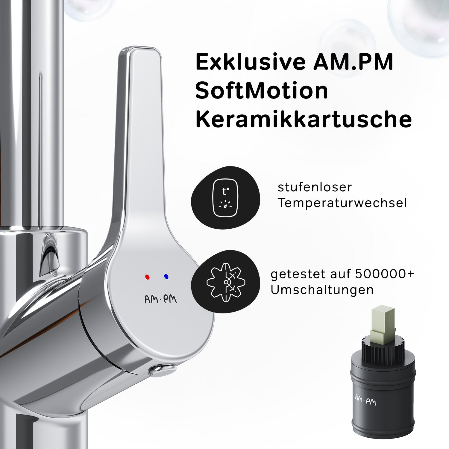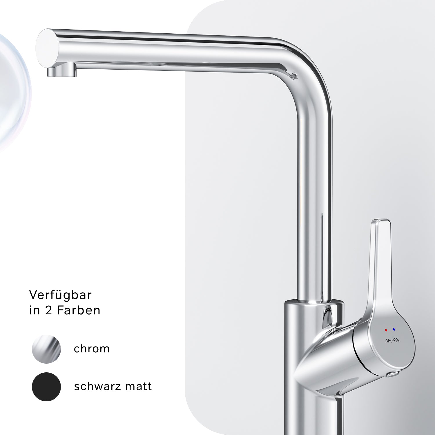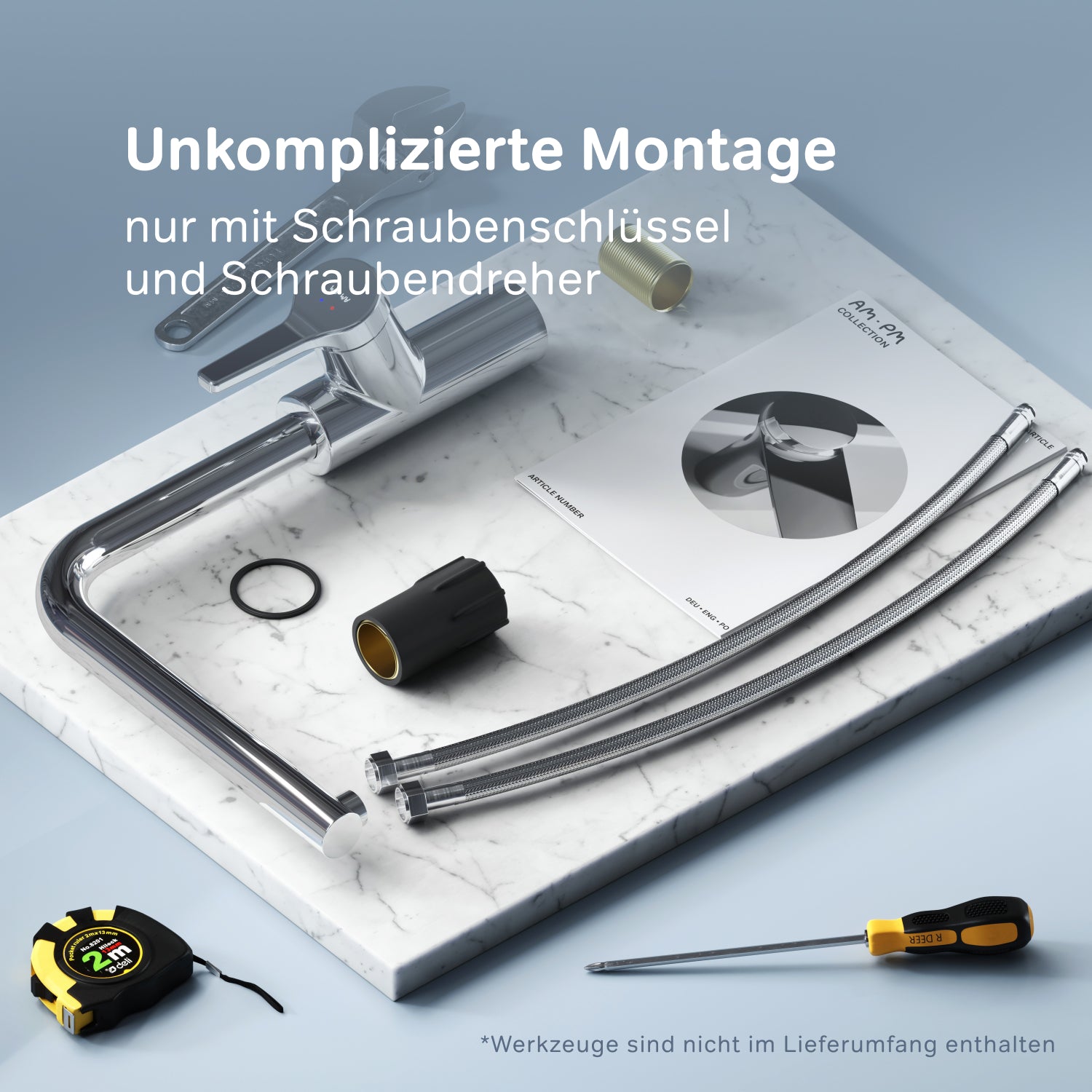 L'AM. PM X-Joy S Le robinet de cuisine n'est pas seulement un atout visuel, mais aussi fonctionnel et fiable. Idéal pour tous ceux qui recherchent un design moderne avec la plus haute qualité dans leur cuisine. Transformez votre environnement de cuisine en une zone élégante et fonctionnelle avec ce robinet qui améliore votre expérience de cuisson et de lavage et transforme votre cuisine en un lieu central où l'esthétique et l'utilité se rencontrent.