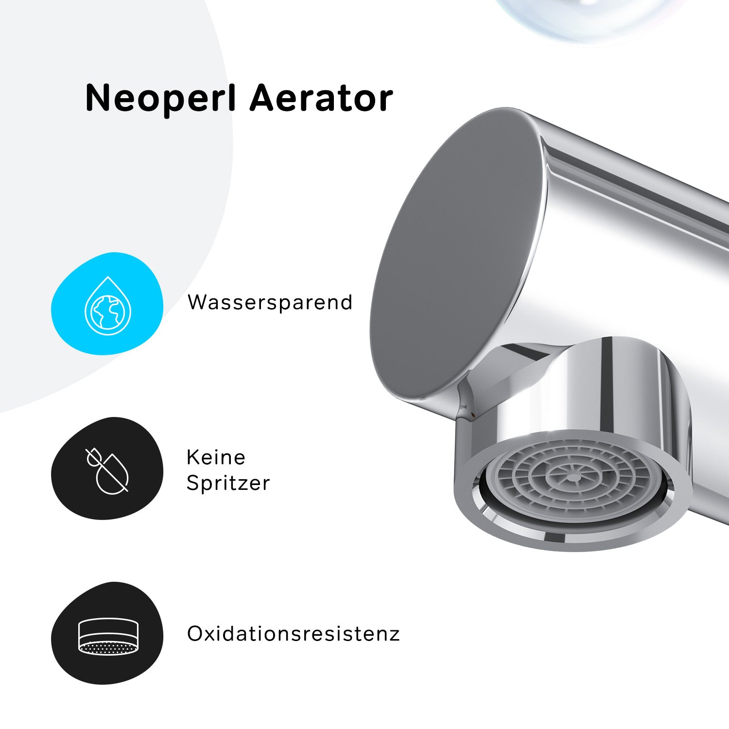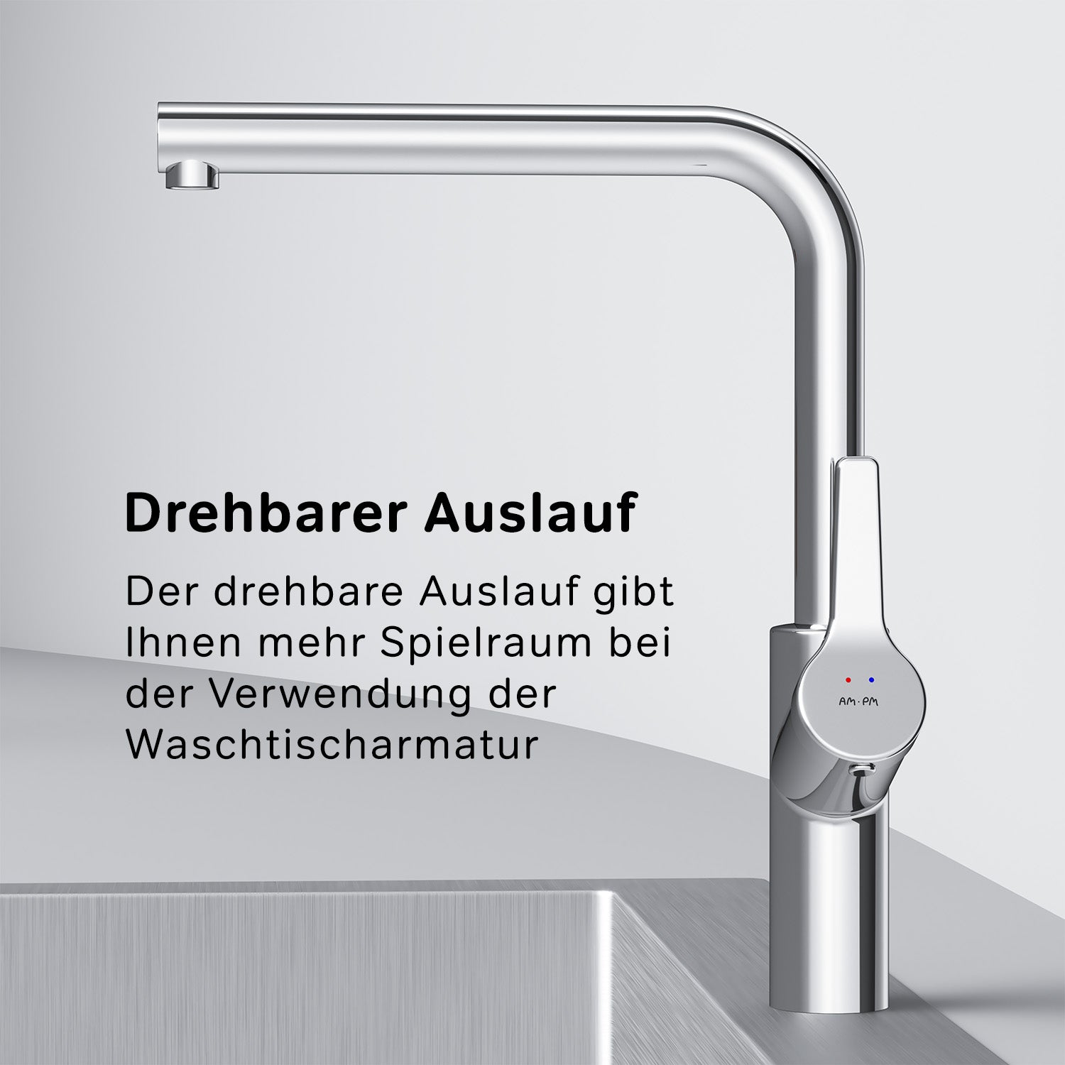 L'AM. PM X-Joy S Le robinet de cuisine en chrome brillant est la symbiose parfaite entre élégance et fonctionnalité pour votre cuisine. Fabriqué en acier inoxydable de haute qualité, ce robinet d'évier rotatif offre non seulement une durabilité mais également un design élégant. La finition chromée polie confère au robinet une brillance moderne et s'intègre parfaitement dans les cuisines contemporaines. Avec son bec verseur rotatif, il offre une flexibilité maximale lors de la cuisson et de la vaisselle. Le raccord haute pression permet un contrôle précis du débit et de la température de l'eau.