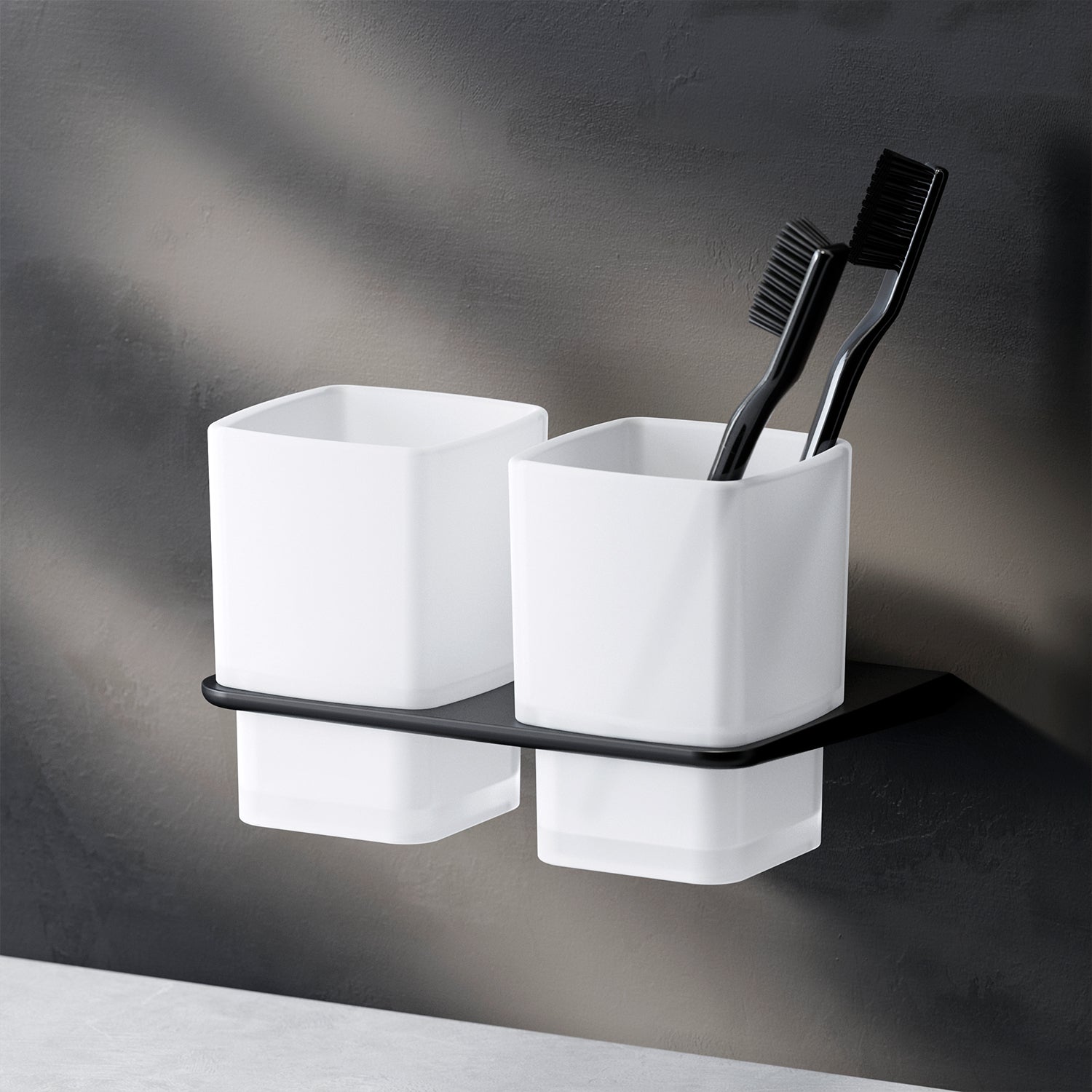 AIB343422 Porte-brosse à dents Inspire V2. 0 double tasse en verre avec support mural, noir