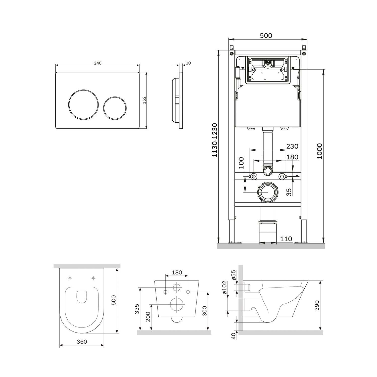 L'ensemble IIS90151. PA1900 offre une combinaison de WC suspendu (CPA1900SC) avec mécanisme d'abaissement automatique à fermeture en douceur, élément pré-mural AM. PM II12709 comprenant une plaque de poussée II90151 (chrome) . Cette combinaison offre une solution minimaliste et hygiénique pour toute salle de bain moderne.
