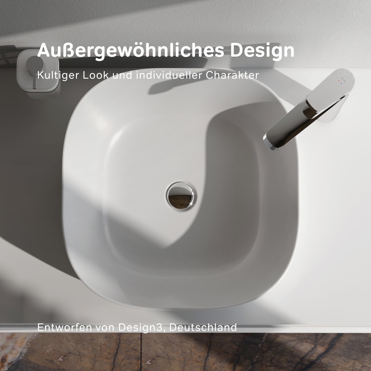 Un produit unique–le lavabo à poser Func–allie un design moderne, des surfaces parfaitement lisses et des lignes fluides. Il a été développé en collaboration avec les studios Brandis, Allemagne, Design 3, Allemagne, et DanelonMeroni, Royaume-Uni.