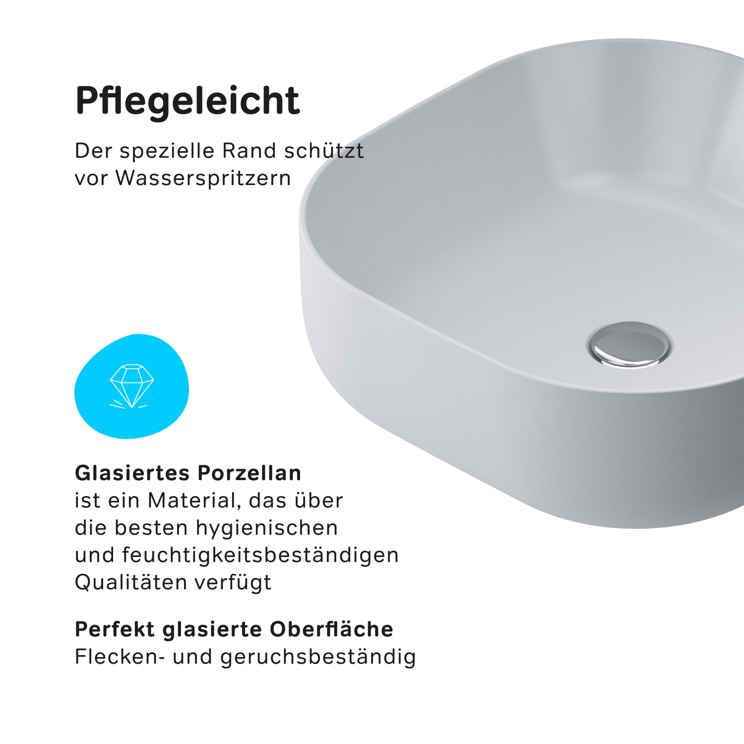 Le lavabo est fabriqué en porcelaine sanitaire, le matériau le plus hygiénique et le plus résistant à l'humidité.