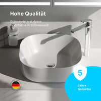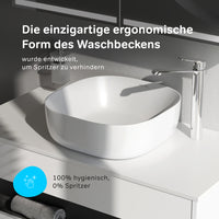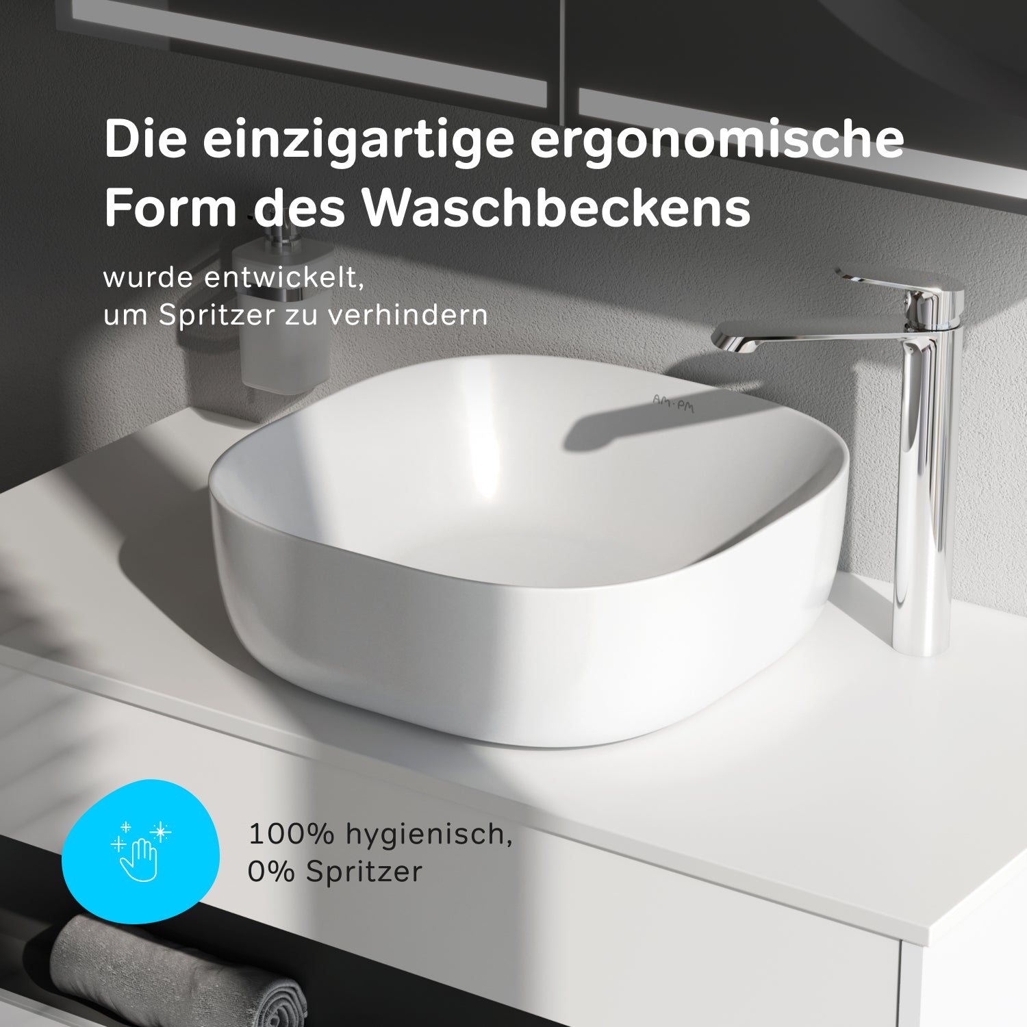 Avec une taille de seulement 43 cm, le lavabo s'intègre parfaitement même dans les petites salles de bains. La forme bien pensée empêche l'eau de déborder et maintient la surface propre, réduisant ainsi le temps de nettoyage.