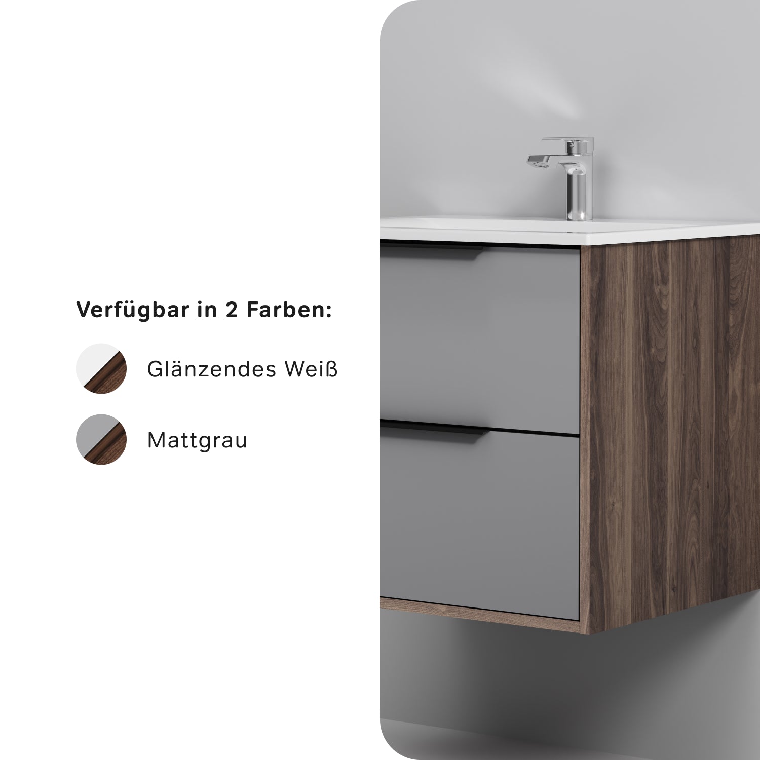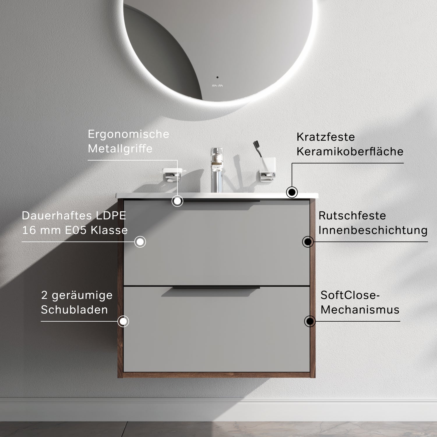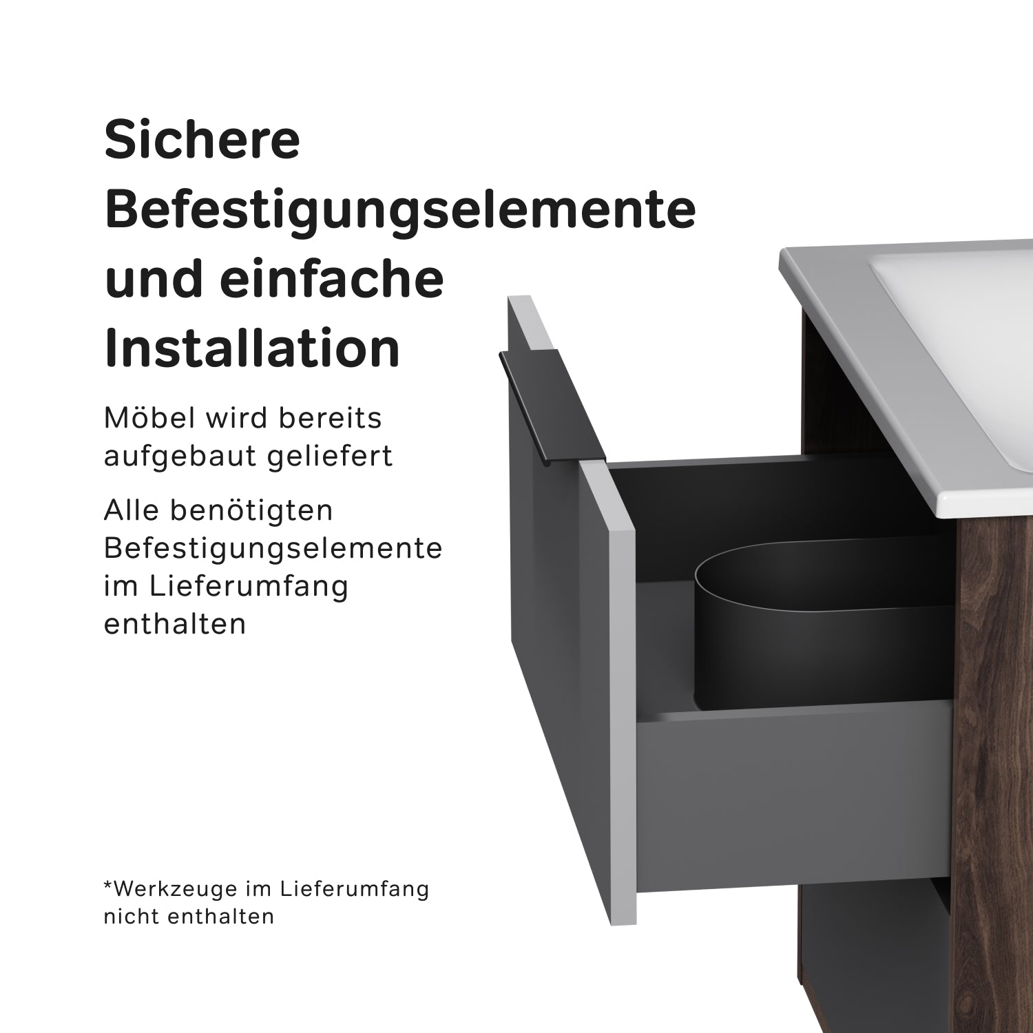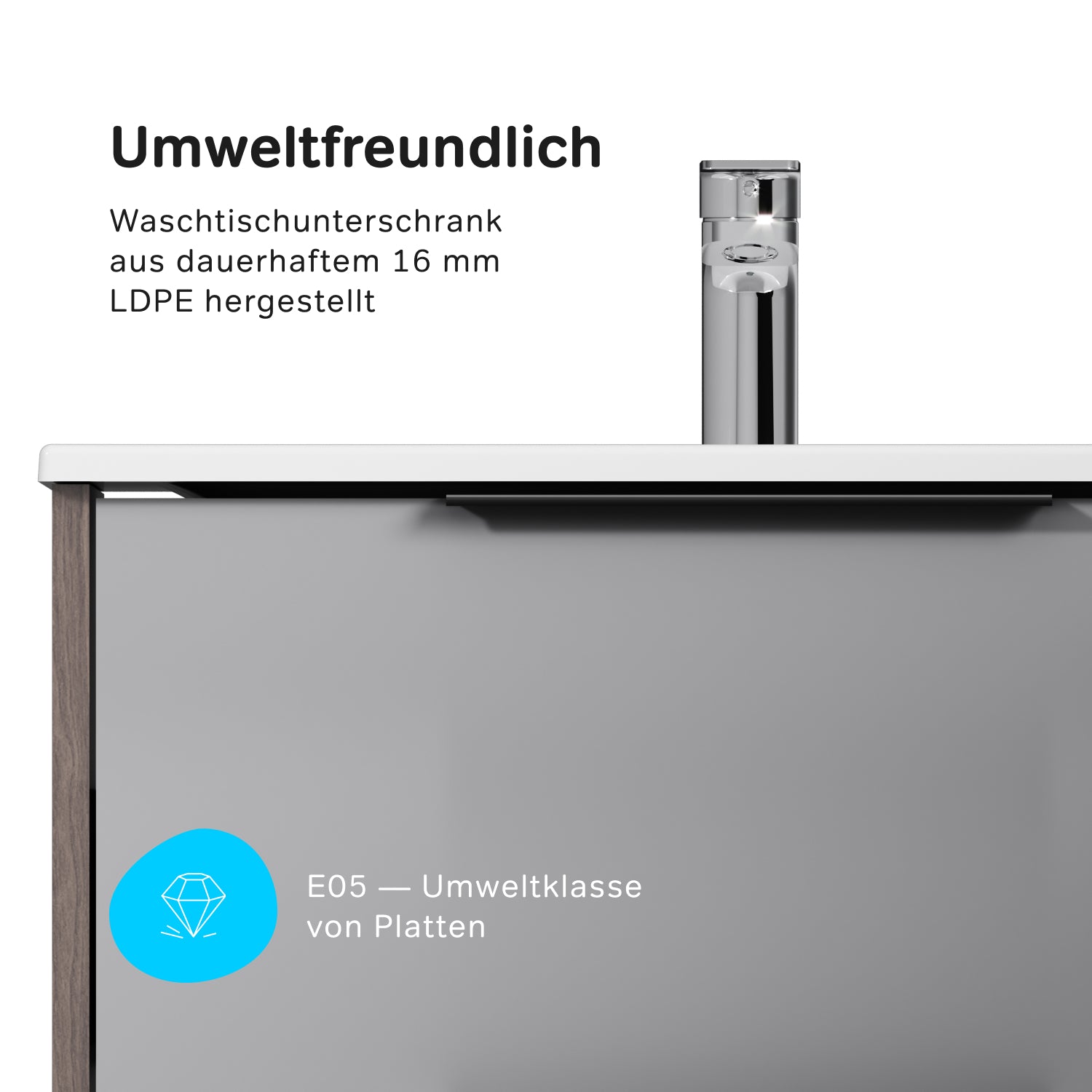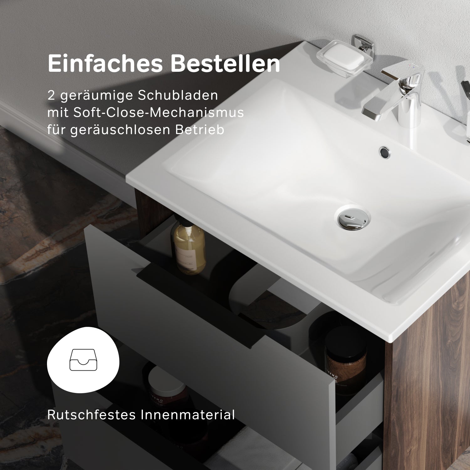 Meuble vasque MNA-FHX0602GM-WCC0602WG avec vasque, 60 cm, 2 tiroirs, graphite mat