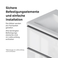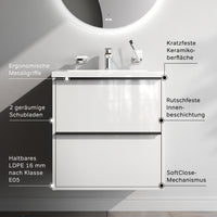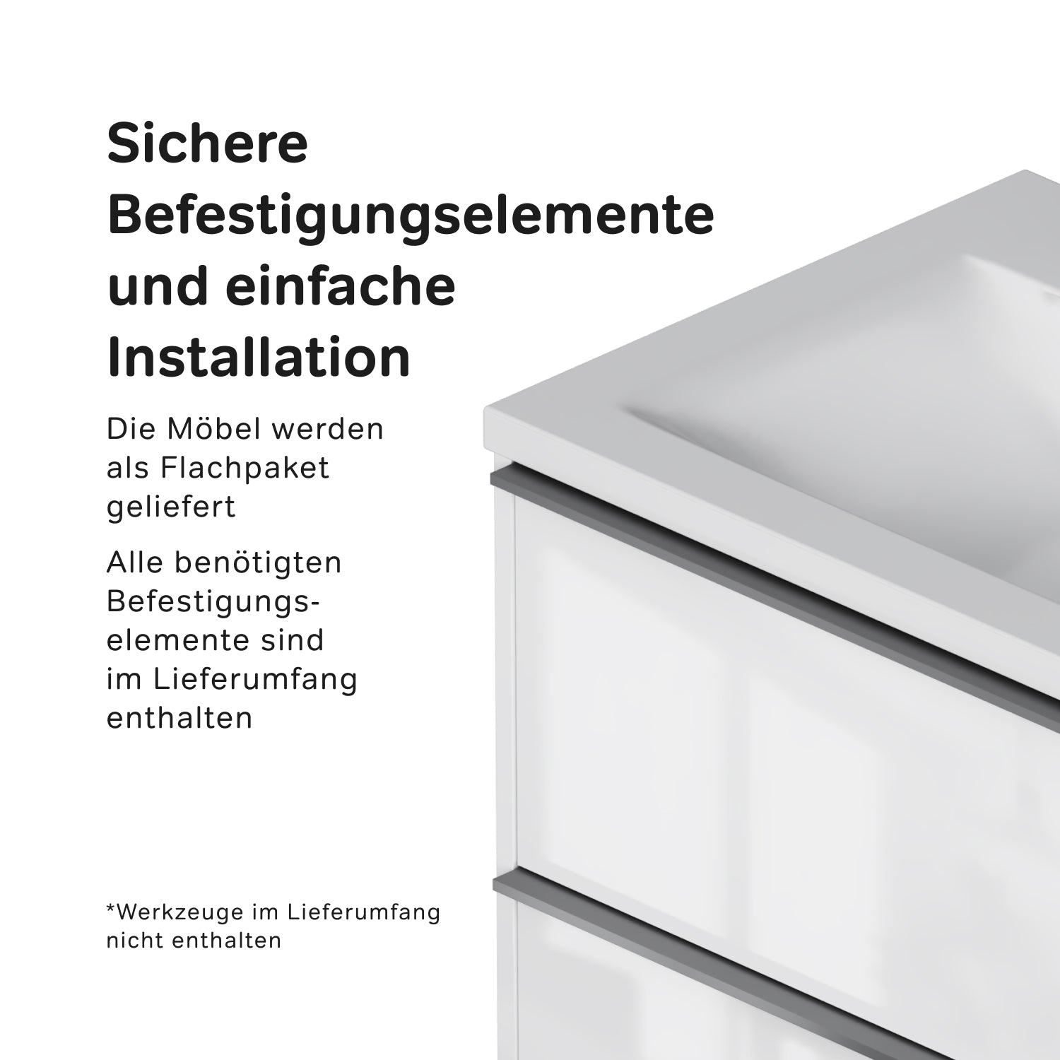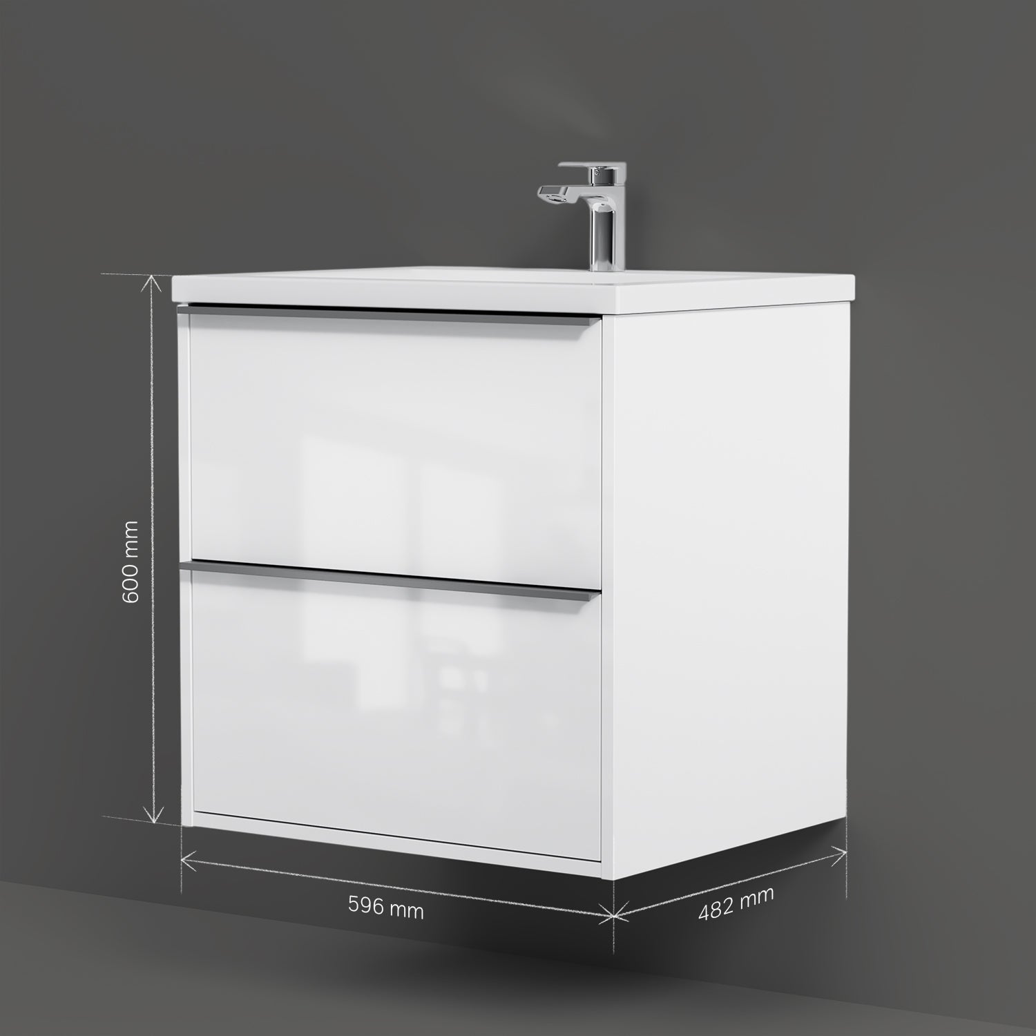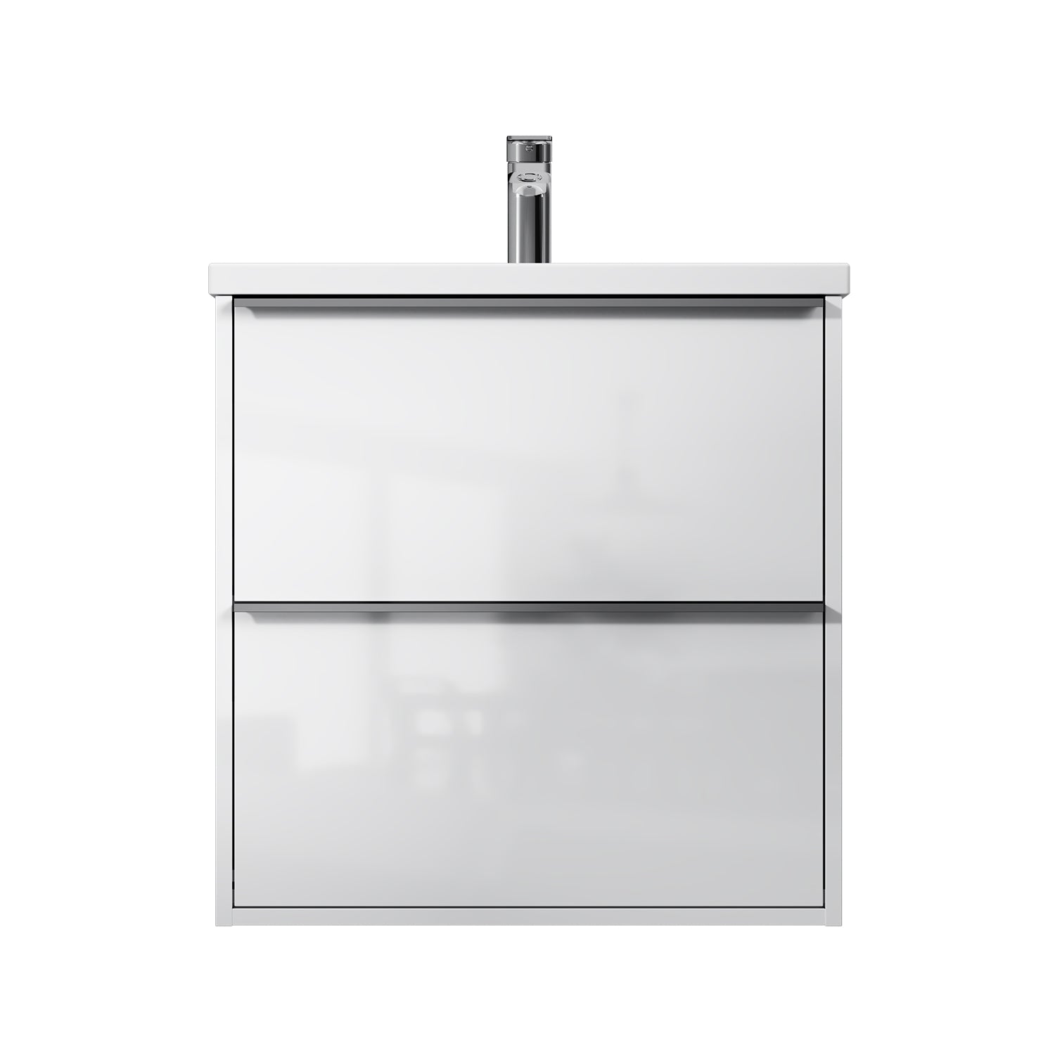 MNA-FHX0602WGSP-WCC0602WG Meuble sous-vasque avec vasque, livré en kit, 60 cm, 2 tiroirs, blanc brillant