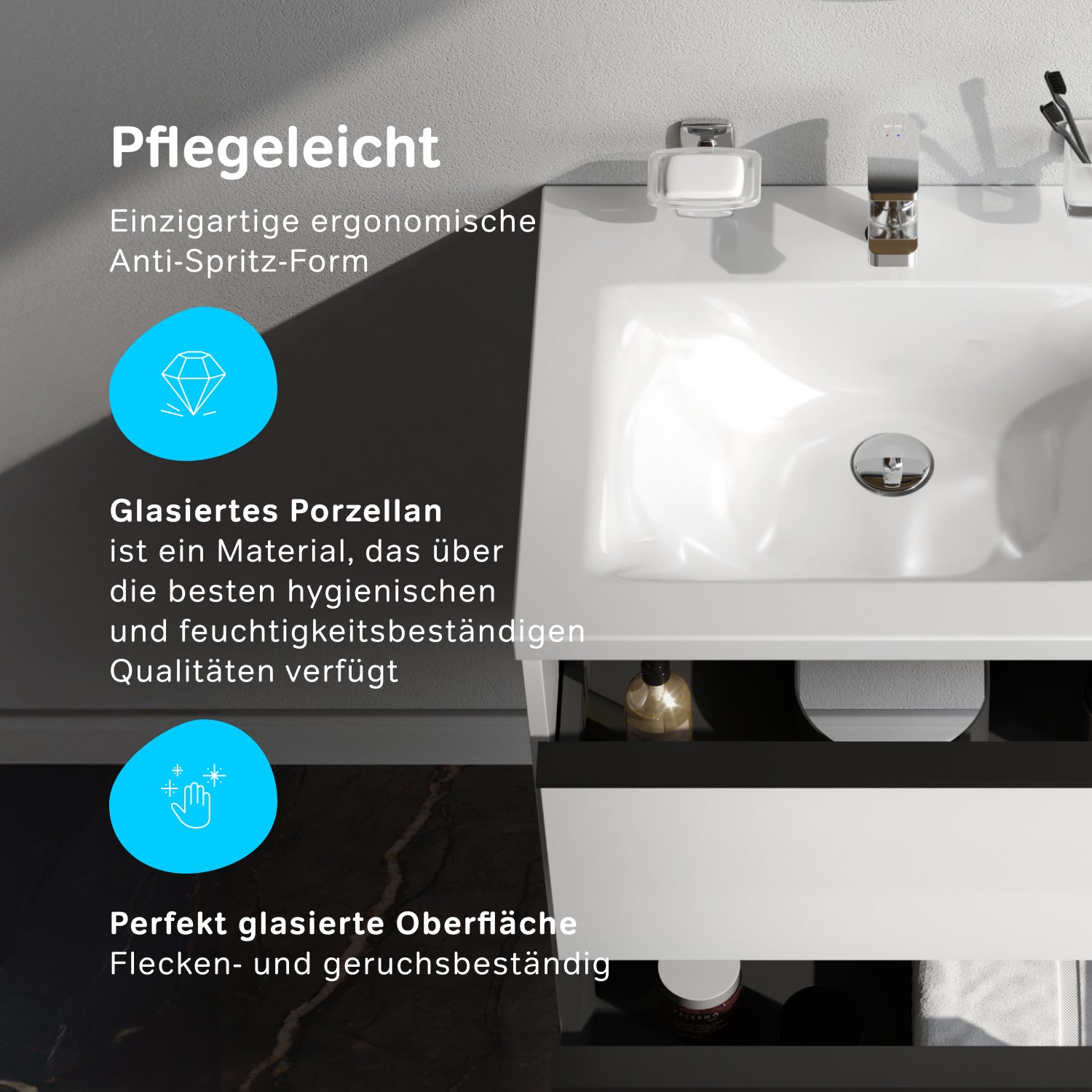 Ensemble prêt à l'emploi : Le meuble sous-vasque est livré avec un lavabo assorti de la même collection.