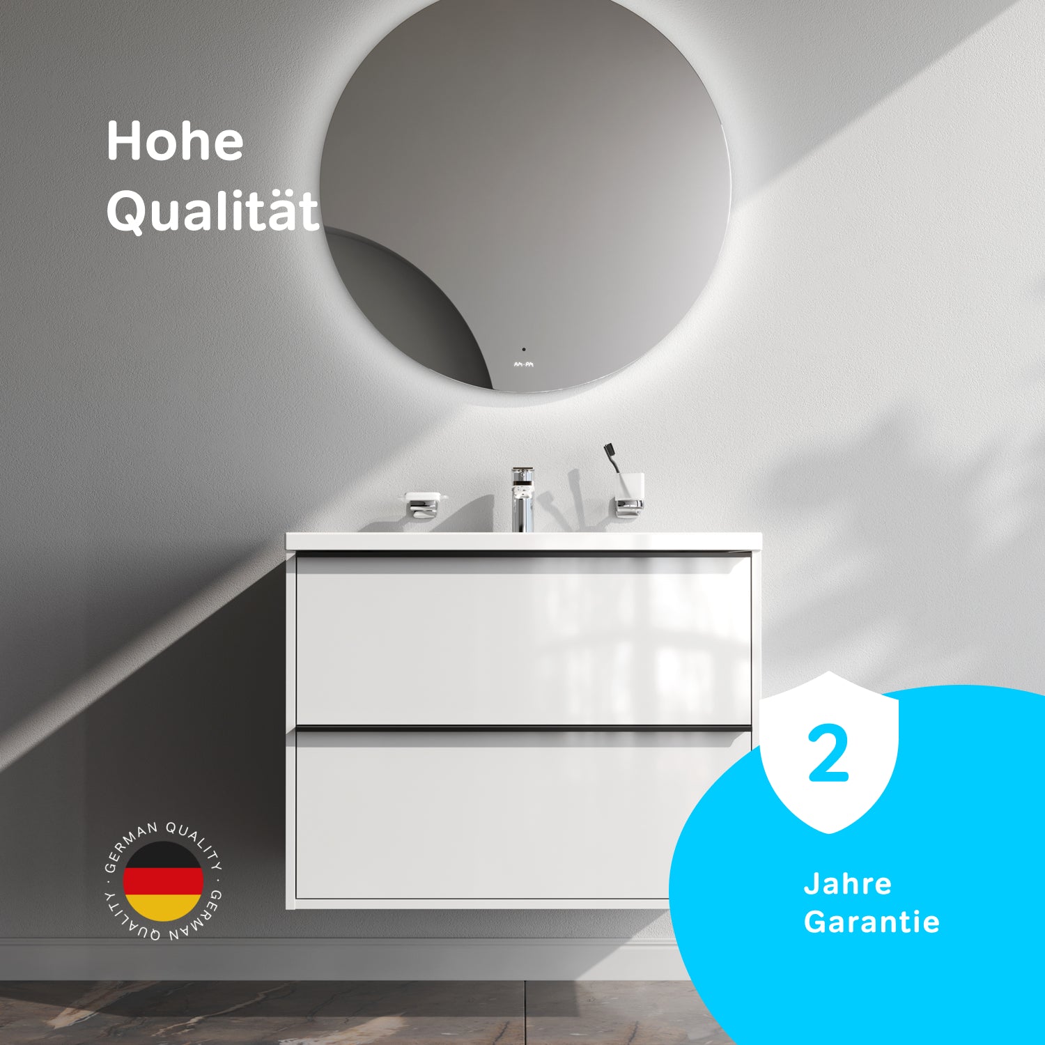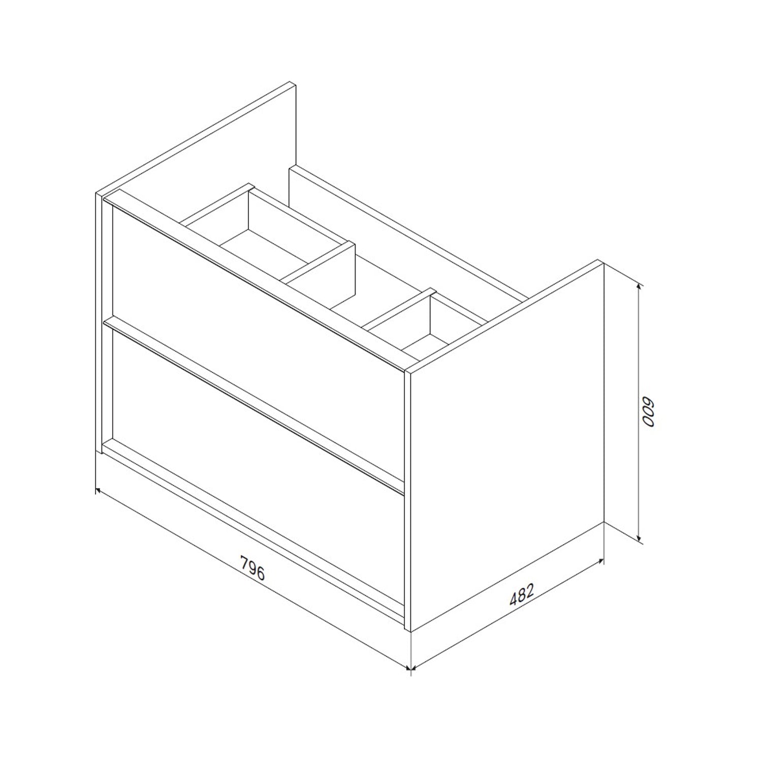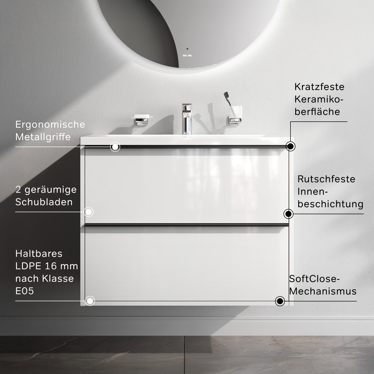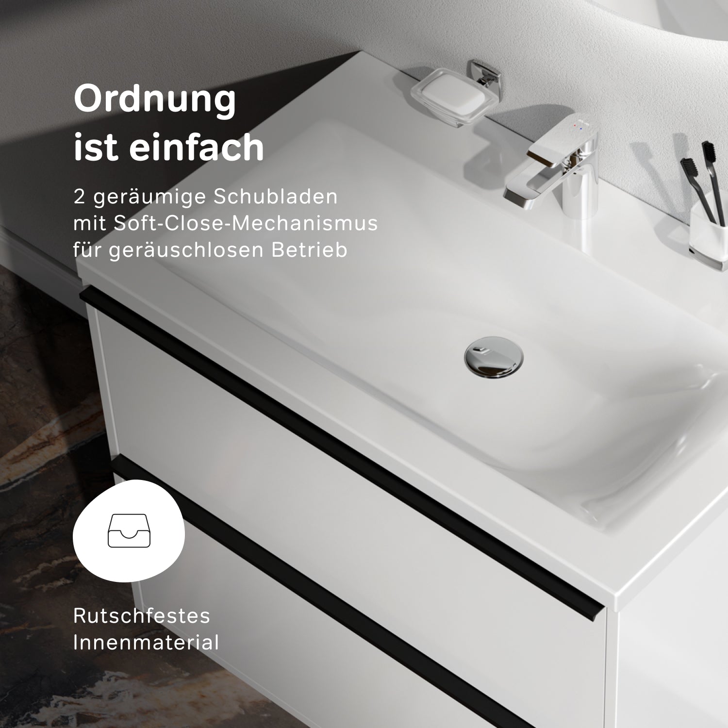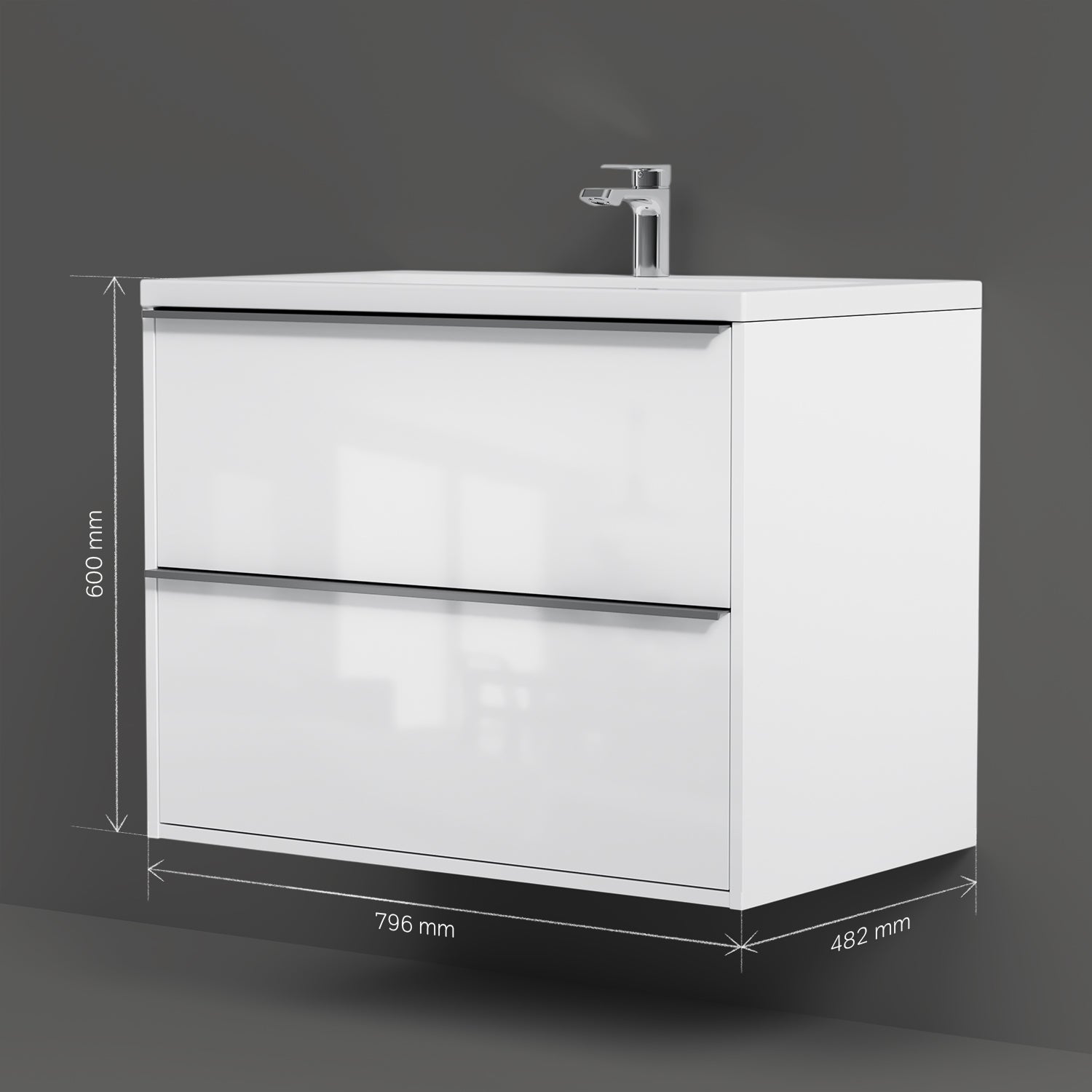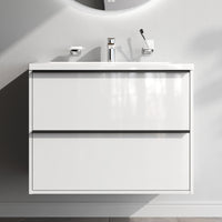 MNA-FHX0802WGSP-WCC0802WG Meuble sous-vasque avec vasque, livré en kit, 80 cm, 2 tiroirs, blanc brillant