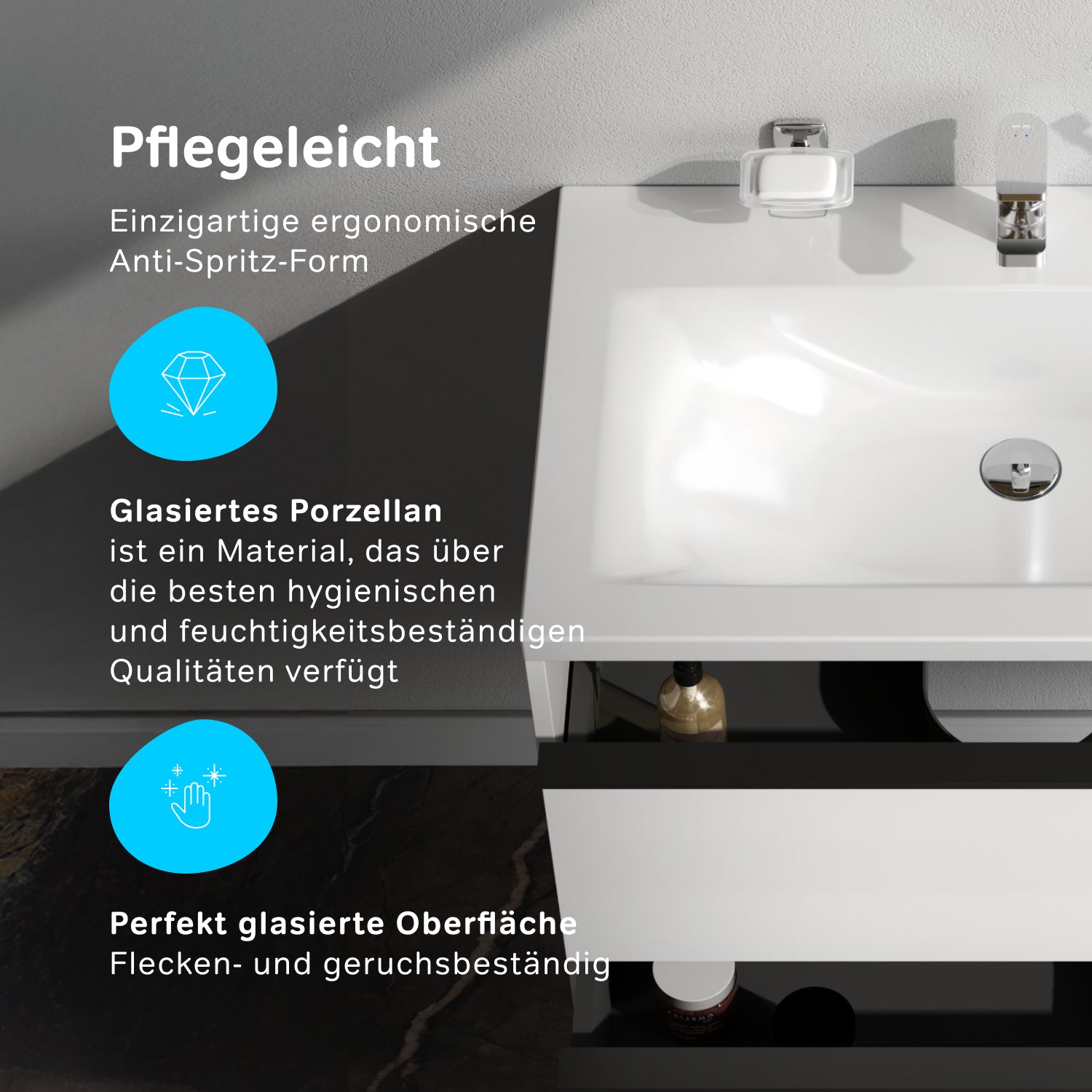 Ensemble prêt à l'emploi : Le meuble sous-vasque est livré avec un lavabo assorti de la même collection.