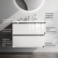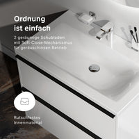 Découvrez le meuble sous-vasque suspendu avec vasque, une pièce maîtresse du design de votre salle de bains. Son design distinctif : lignes épurées, formes marquantes et ergonomie optimale. Deux tiroirs extra-larges, dotés d'un système d'organisation intérieur sophistiqué, offrent encore plus d'espace et une organisation optimale. Un revêtement intérieur antidérapant et une découpe spéciale pour le raccordement du siphon complètent ce concept sophistiqué. Le meuble bas est fabriqué à partir de matériaux robustes et offre une durabilité exceptionnelle.