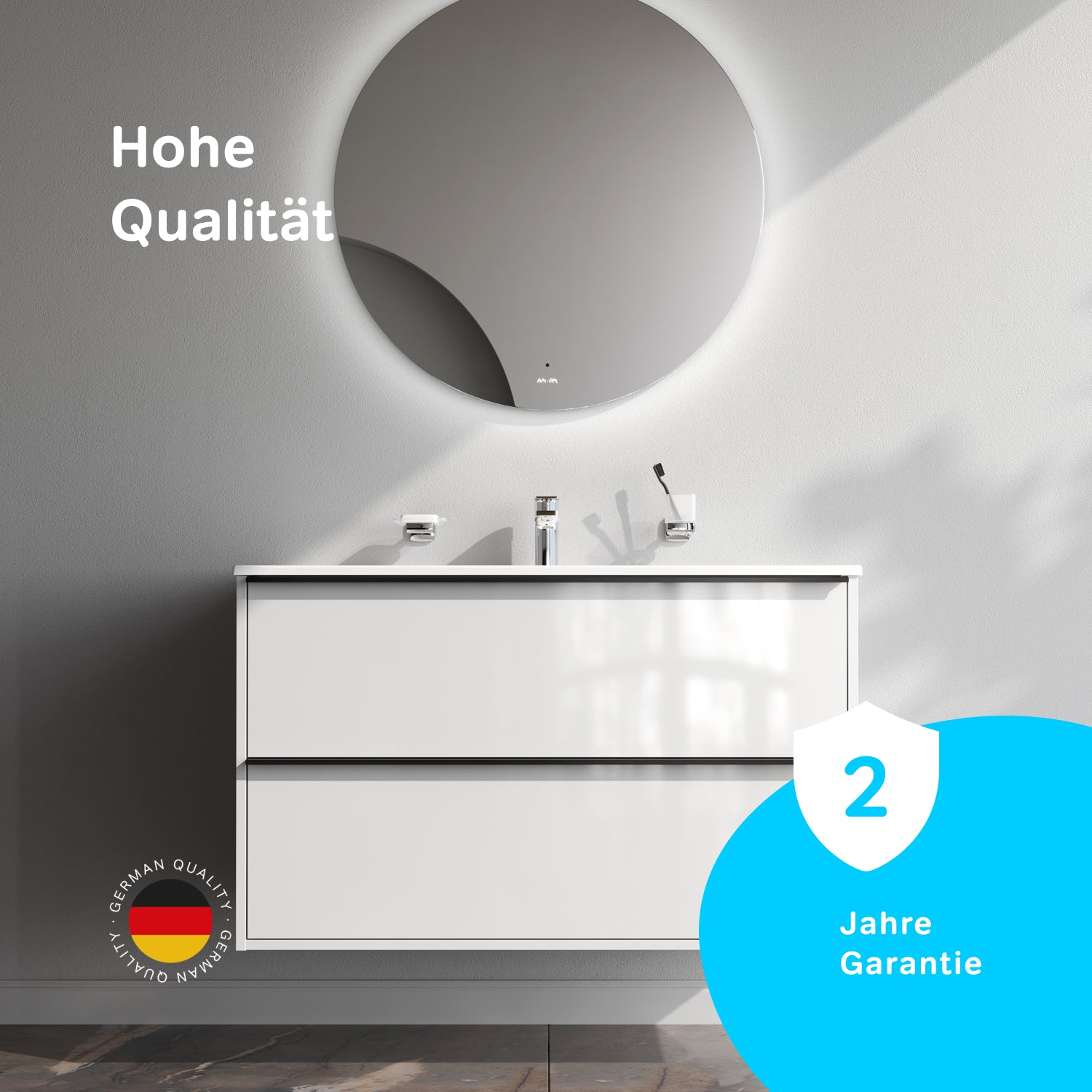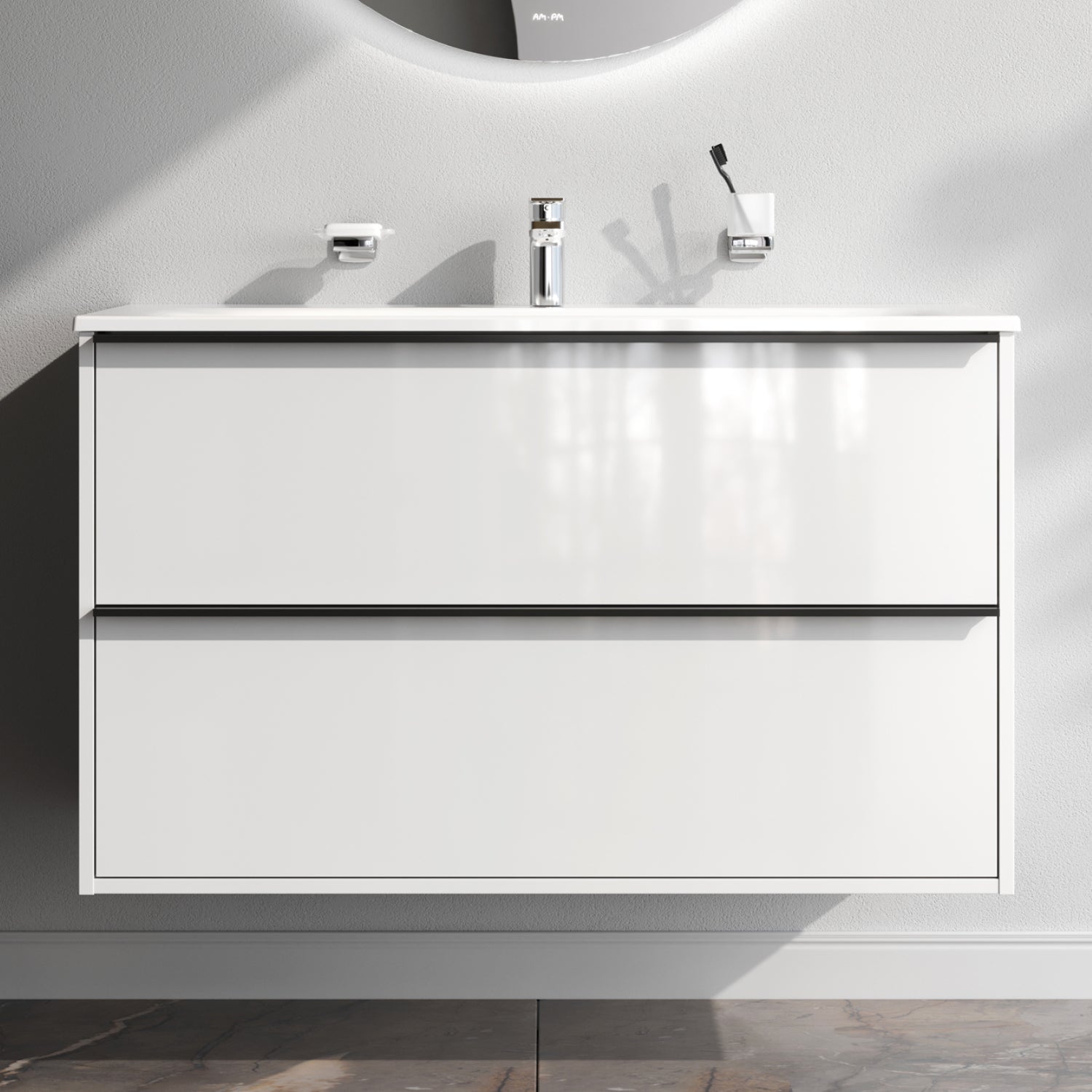 MNA-FHX1002WGSP-WCC1002WG Meuble sous-vasque avec vasque, livré en kit, 100 cm, 2 tiroirs, blanc brillant