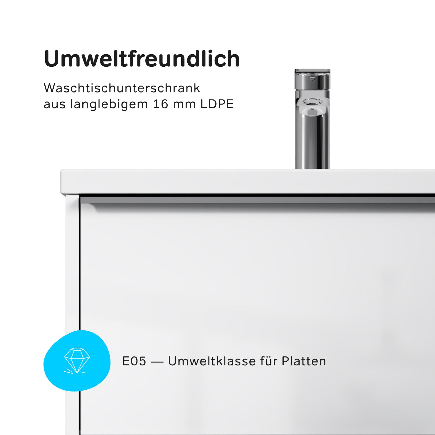 Ensemble prêt à l'emploi : Le meuble sous-vasque est livré avec un lavabo assorti de la même collection.