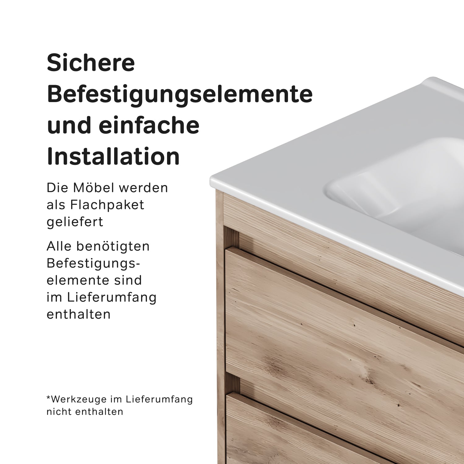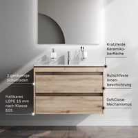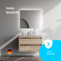 MPAX0802HF-C0802WG Meuble sous-vasque avec vasque, livré démonté, 80 cm, 2 tiroirs, chêne