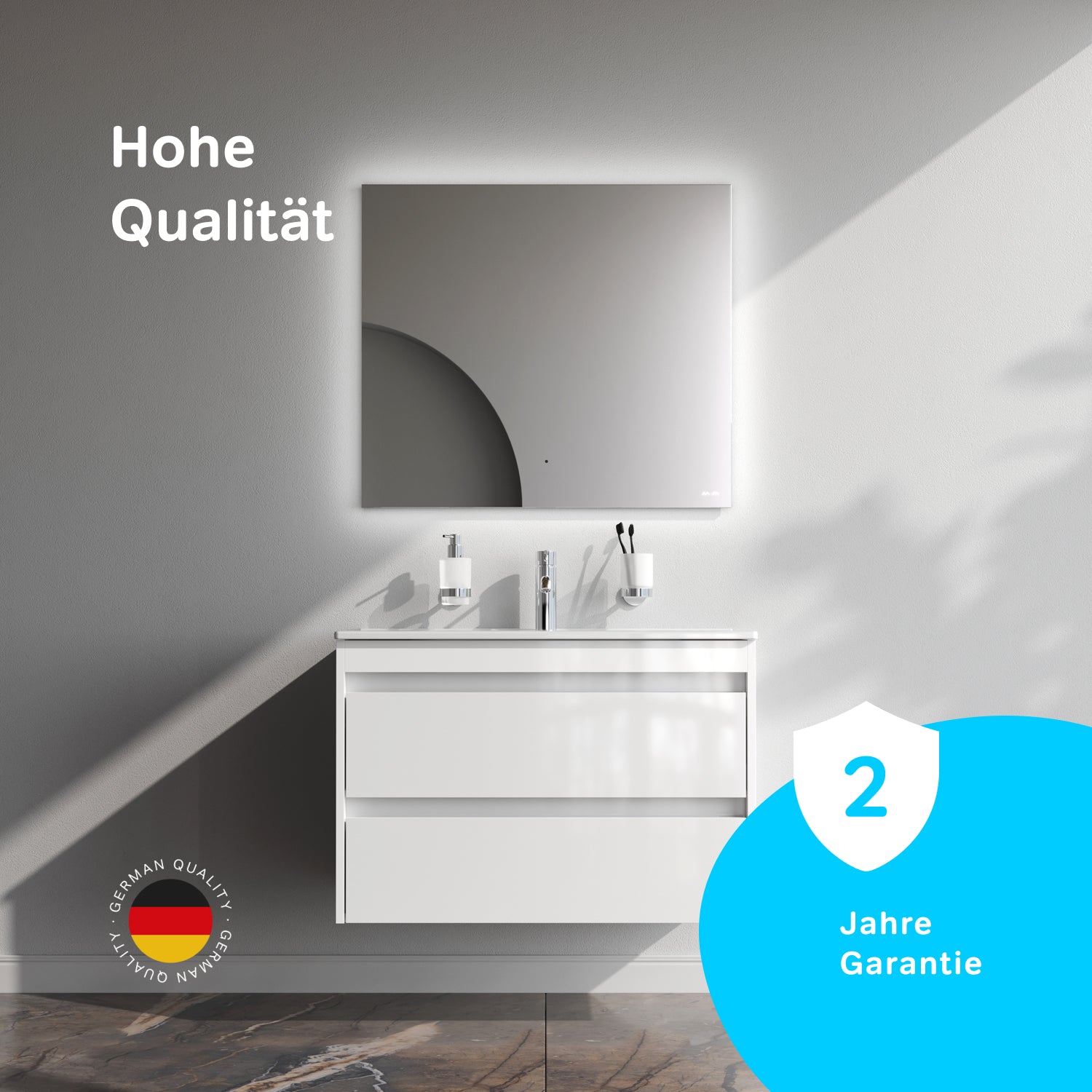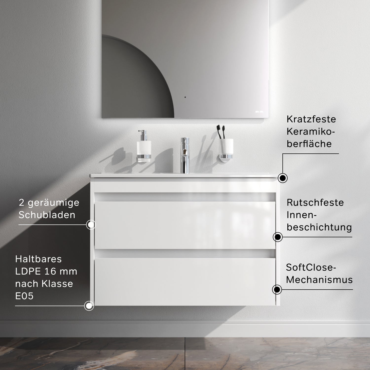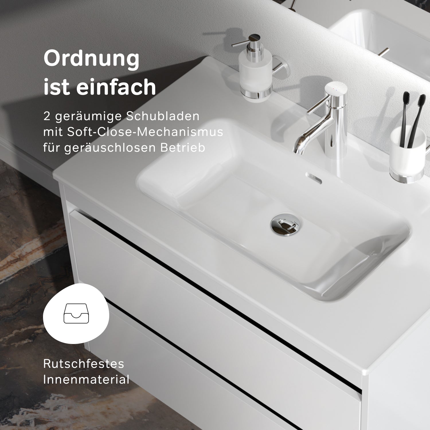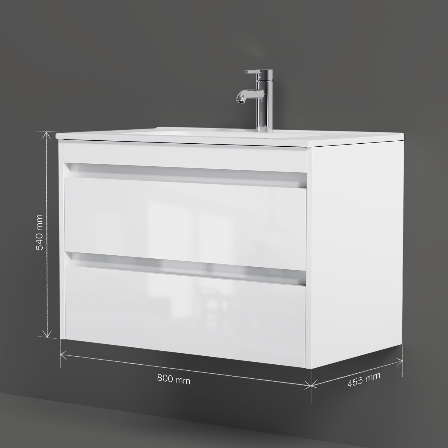 MPAX0802WG-C0802WG Meuble sous-vasque avec vasque, livré en kit, 80 cm, 2 tiroirs, blanc brillant