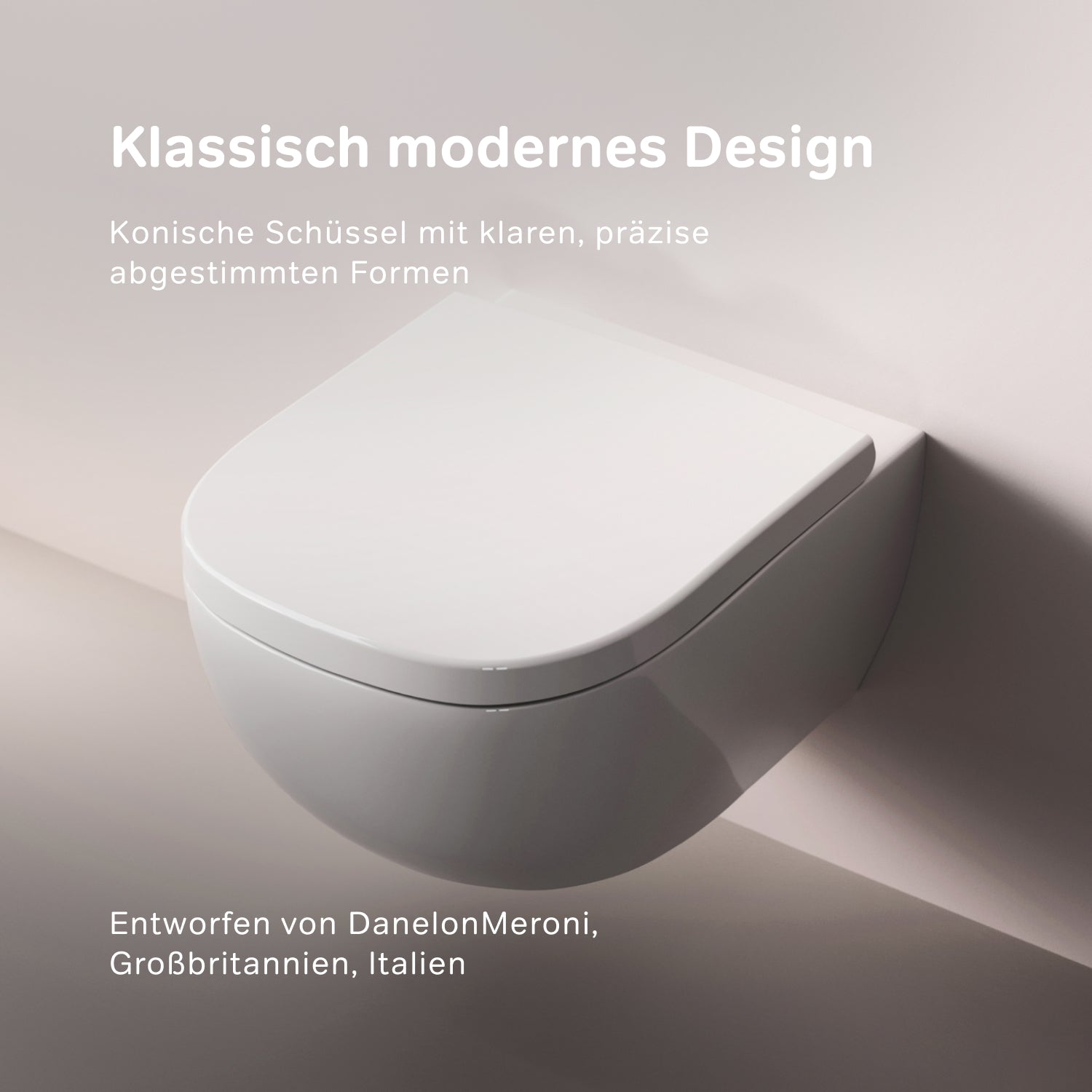 Comparée aux systèmes de rinçage classiques, cette technologie assure un mouillage plus complet de la surface de la cuvette, réduit la consommation d'eau jusqu'à 50 %, minimise le bruit du rinçage et évite les éclaboussures–pour un confort et une hygiène accrus au quotidien.