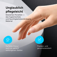 La livraison inclut un abattant amovible en duroplast avec système de fermeture amortie (microlift) . Résistant aux rayures, le duroplast, associé à des fixations en acier inoxydable, garantit une grande durabilité de l'abattant.